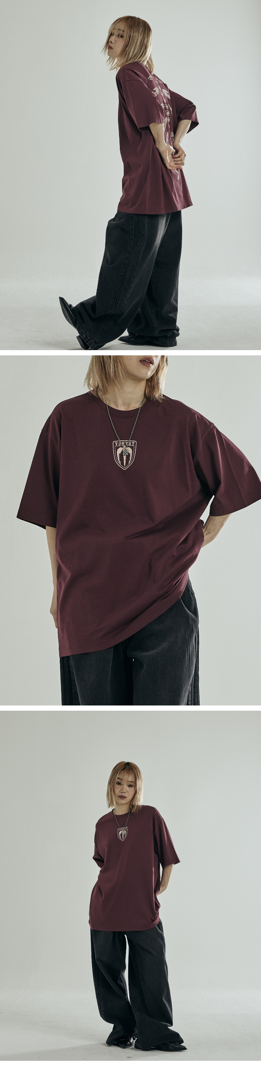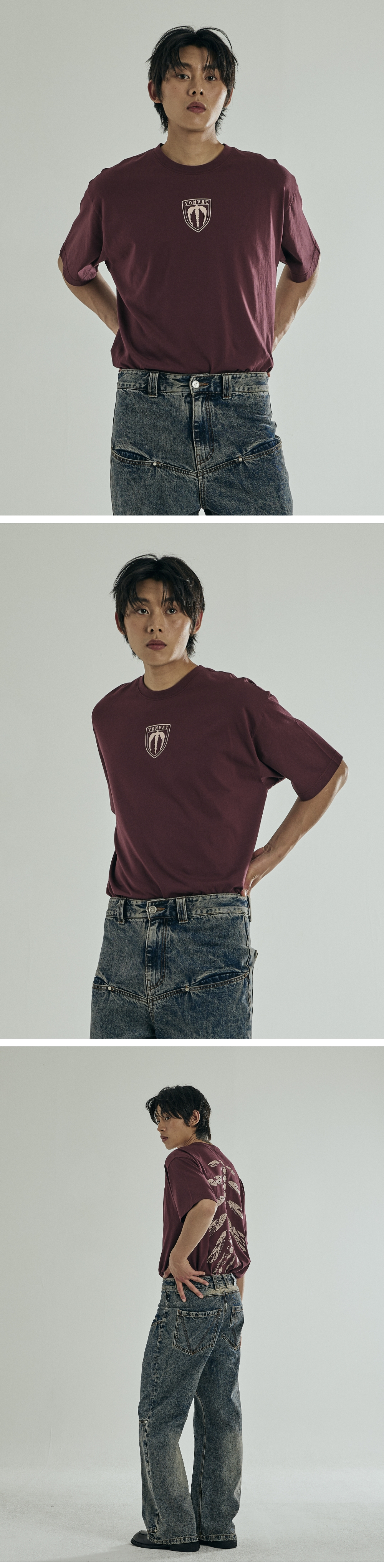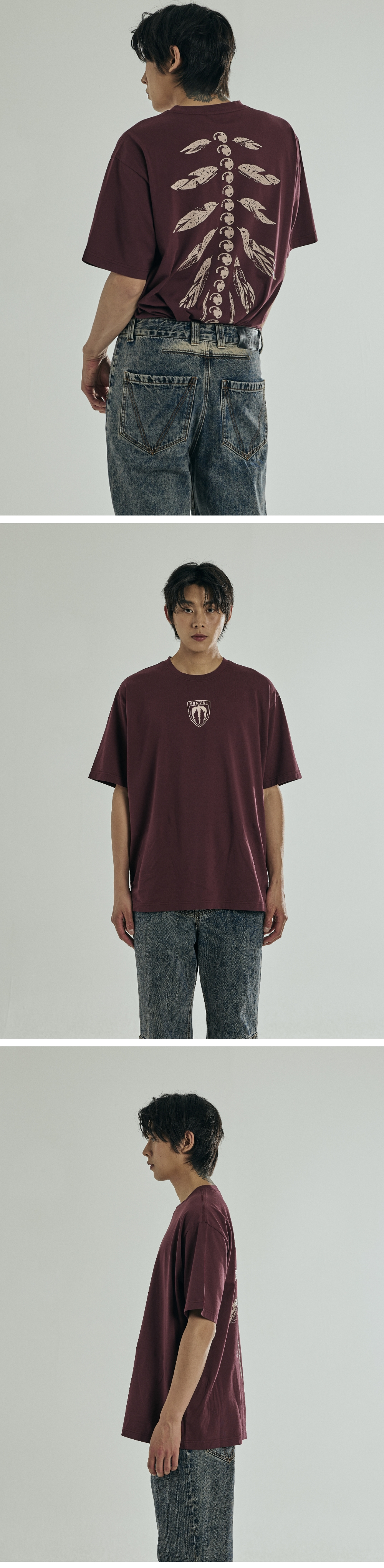 빈티지한 톤온톤 그래픽의 세미오버핏 반팔 티셔츠 본바트 시그니처인 낙엽의 아웃라인을 따서 만든 척추 형태의 그래픽을 실리콘 프린팅 적당한 두께감의 20수 싱글 원단으로 제작 Shell : 코튼 100% 세미 오버핏 1(S) : 총장 69, 어깨단면 49.5, 가슴단면 58.5, 소매길이 22.5, 밑단단면 55 2(M) : 총장 71, 어깨단면 51.5, 가슴단면 61, 소매길이 23.5, 밑단단면 57.5 3(L) : 총장 73, 어깨단면 53.5, 가슴단면 63.5, 소매길이 24.5, 밑단단면 60