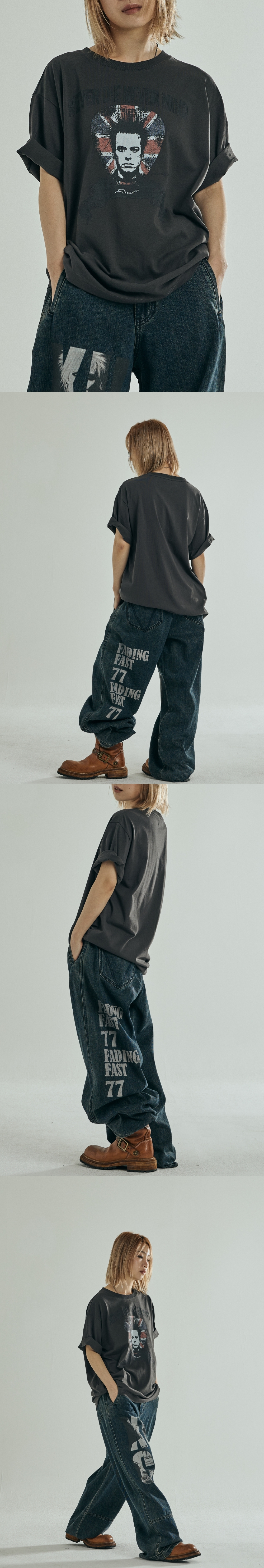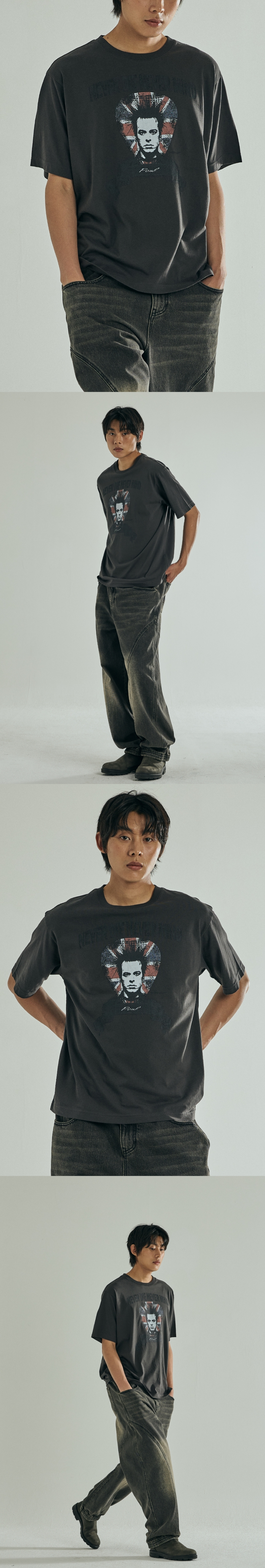 부드러운 터치감의 20수 원단으로 제작 어깨와 팔,허리 라인 삼봉 처리 펑키한 락스타무드의 포인트 그래픽 작업 Shell : 코튼 100% 1(S) : 총장 68, 어깨 49 가슴단면 57, 소매길이 23.5, 밑단단면 56 2(M) : 총장 70, 어깨 51가슴단면 59, 소매길이 24.5, 밑단단면 58.5 3(L) : 총장 72, 어깨 53 가슴단면 61, 소매길이 25.5, 밑단단면 61 모델1(남) 184cm / 상의 3사이즈 / 하의 2사이즈 모델2(남) 182cm / 상의 3사이즈 / 하의 2사이즈 모델3(여) 175cm / 상의 3사이즈 / 하의 2사이즈