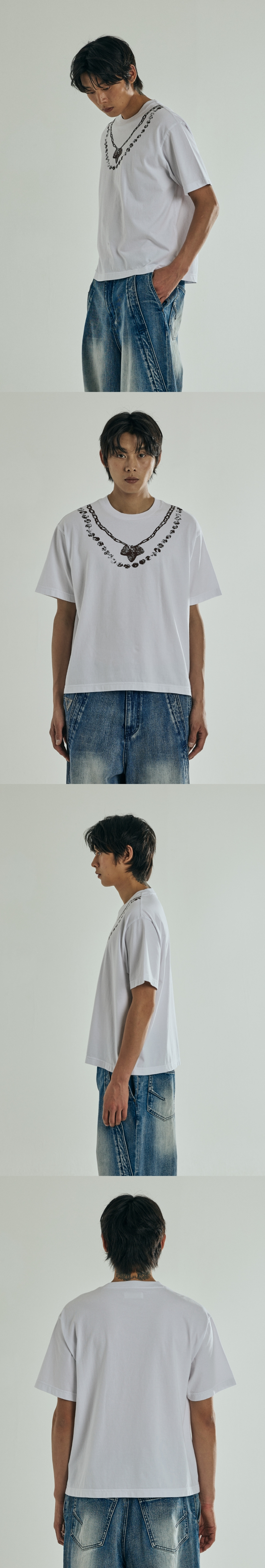 Vonvat Necklace Graphic Short Sleeve White