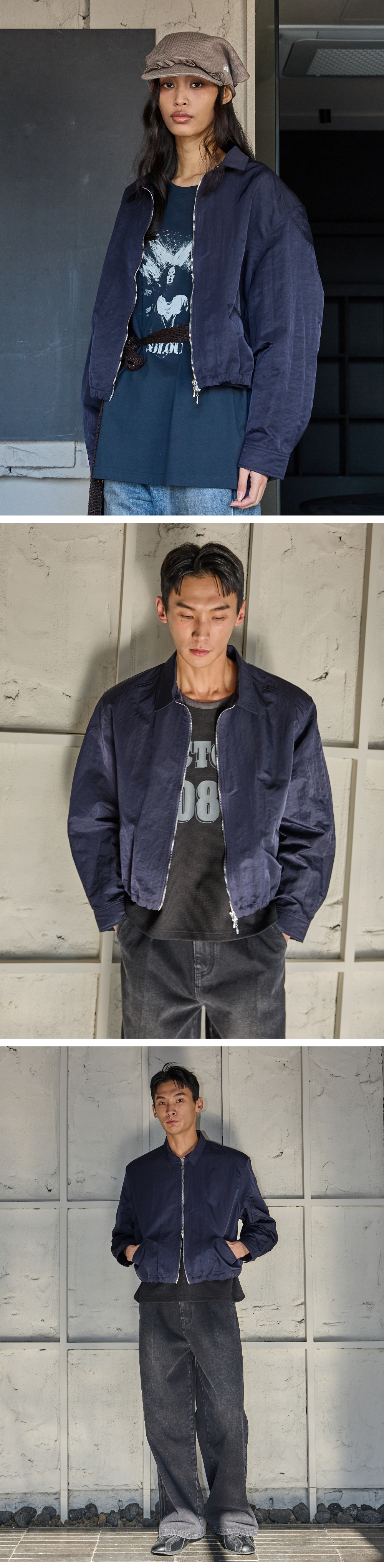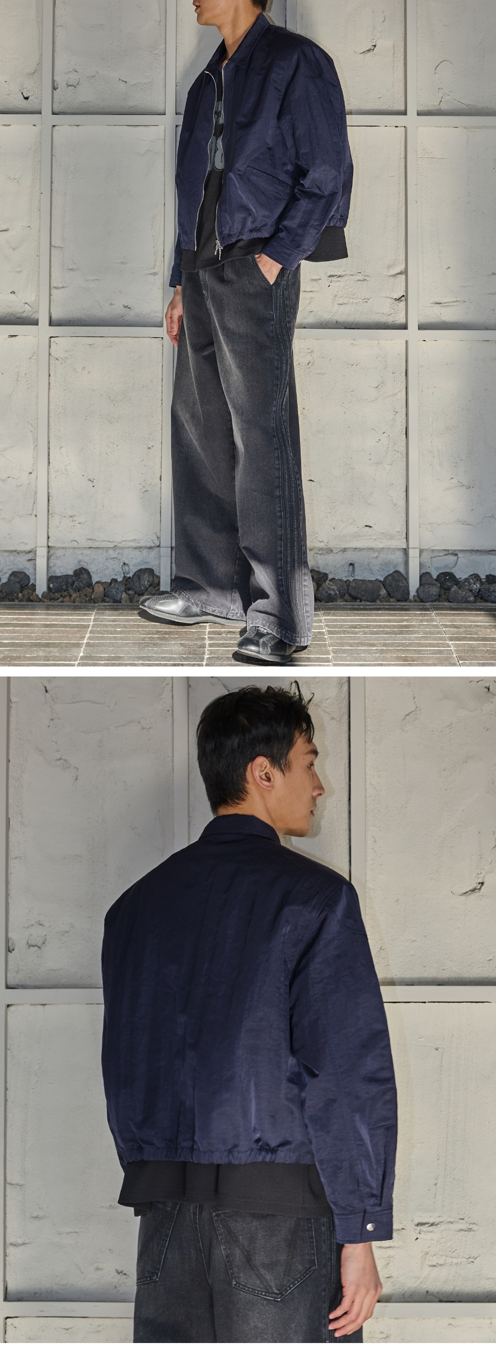 - 은은한 광택감의 나일론원단의 셔츠형 아우터 - 어깨패드가 들어가서 남성적인 실루엣 연출 - 밑단은 1인치 폭의 E-band 밴딩처리 - 안감이 없어서 한여름 제외하고 착용가능 Shell : Nylon 100% Caution : 안감쪽 어깨 패드부분은 갑작스러운 힘이 가해지면 손상 될 가능성 有 크롭 오버핏 2(M) : 총장 60, 어깨단면 55, 가슴단면 67.5, 소매길이 63, 밑단단면 50 3(L) : 총장 62, 어깨단면 57, 가슴단면 70, 소매길이 64.5, 밑단단면 52.5 * 95~105사이즈를 입으시는분은 2사이즈 * 105~110사이즈를 입으시는분은 3사이즈 * 크롭아우터이므로 위 스펙대로 입으시면 무난한 핏으로 연출가능합니다