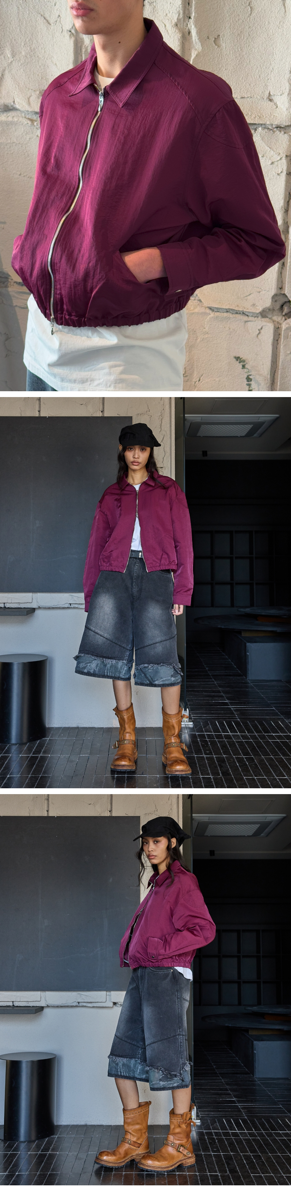 본바트 숄더 패드 집업 셔츠 자켓 버건디