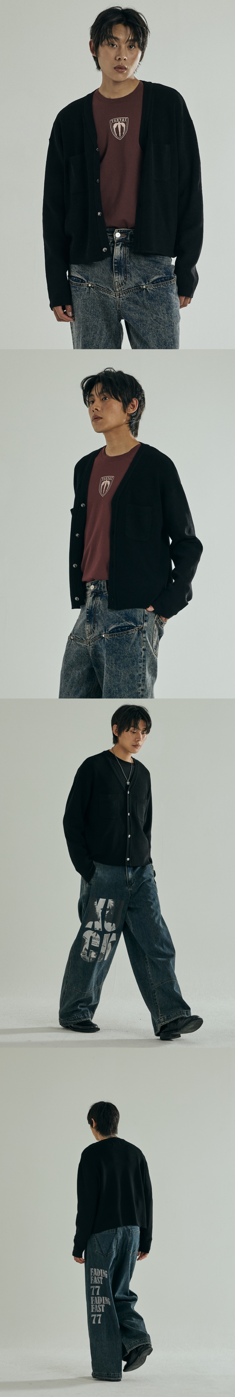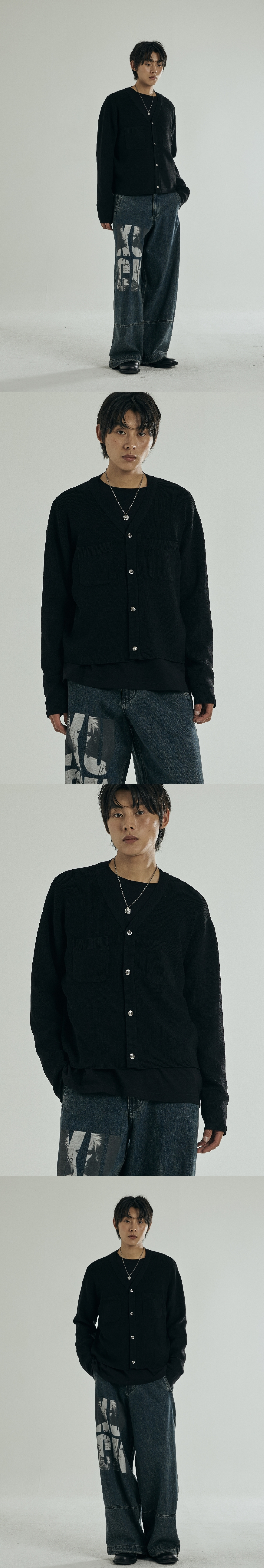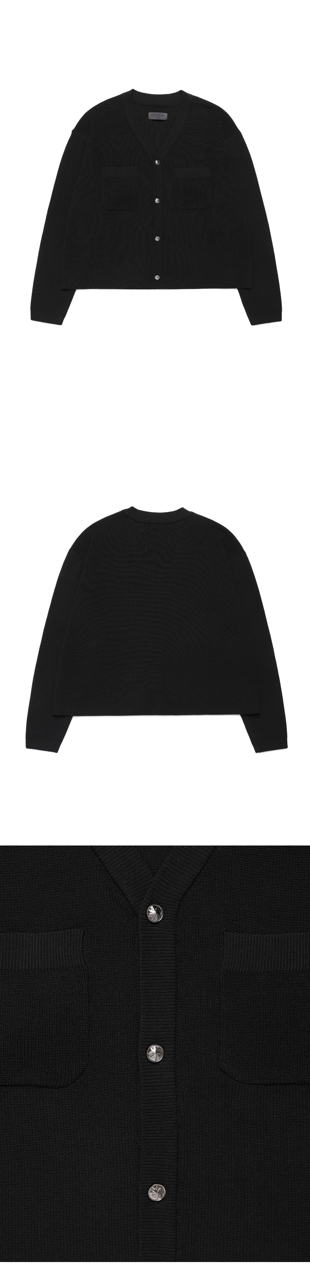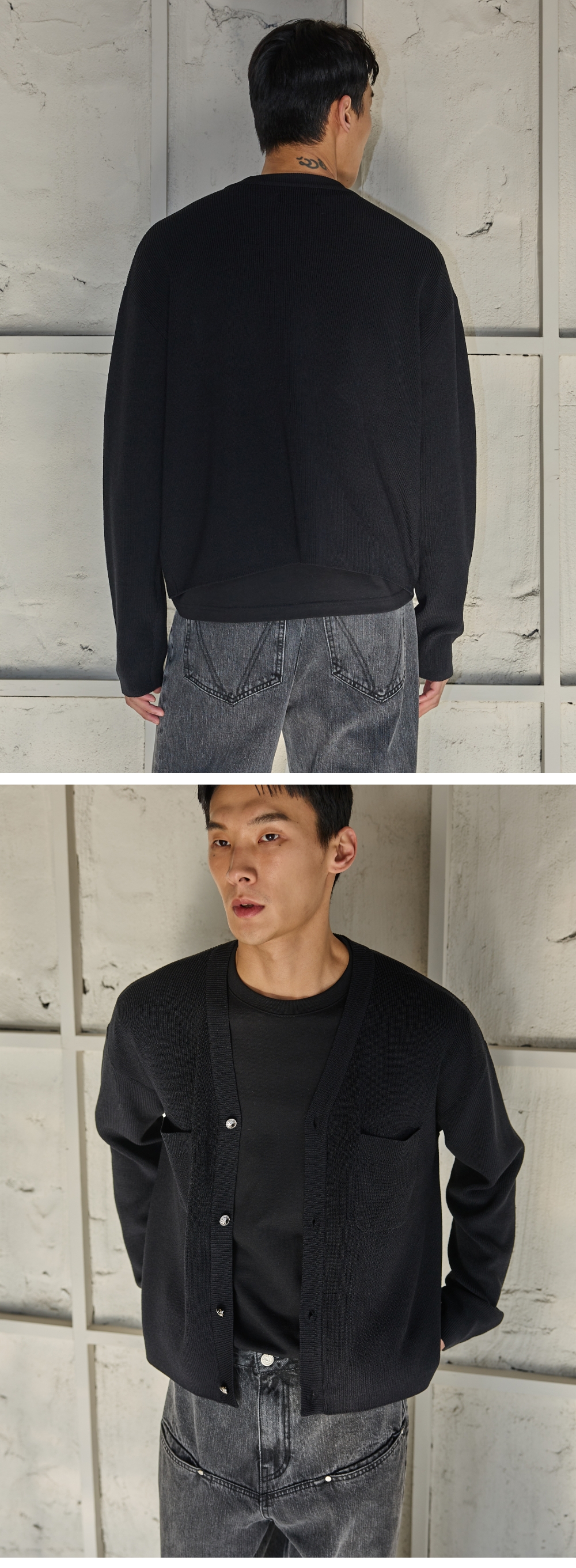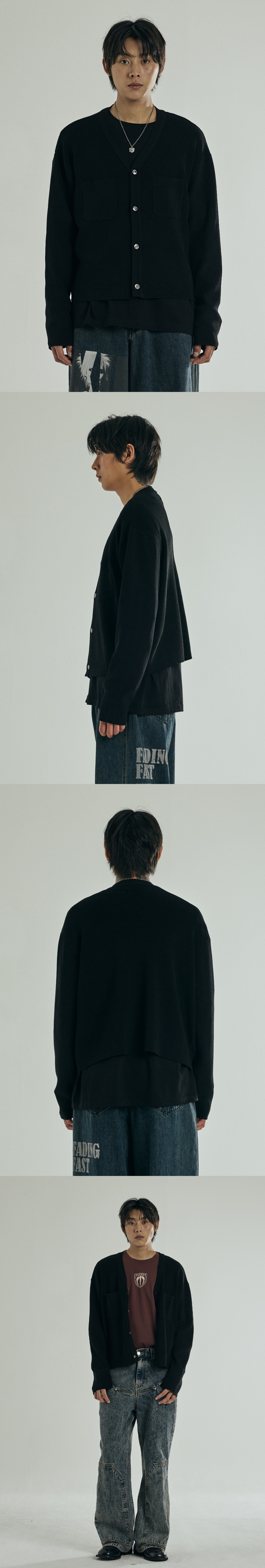 - 펑키한 룩이나 깔끔한 캐쥬얼룩에도 어울리는 가디건 - 비스코스 혼용의 매끈하고 시원한 터치감의 원사 사용 - 메탈버튼을 사용하여 원포인트를 줌 - RIB작업없이 제끝처리 Shell : Polyester 60%, Viscos 40% 1(S) : 총장 57.5, 어깨단면 52.5, 가슴단면 53, 소매길이 58, 밑단단면 50 2(M) : 총장 59.5, 어깨단면 54.5, 가슴단면 58, 소매길이 59.5, 밑단단면 55 3(L) : 총장 61.5, 어깨단면 56.5, 가슴단면 63, 소매길이 61, 밑단단면 60