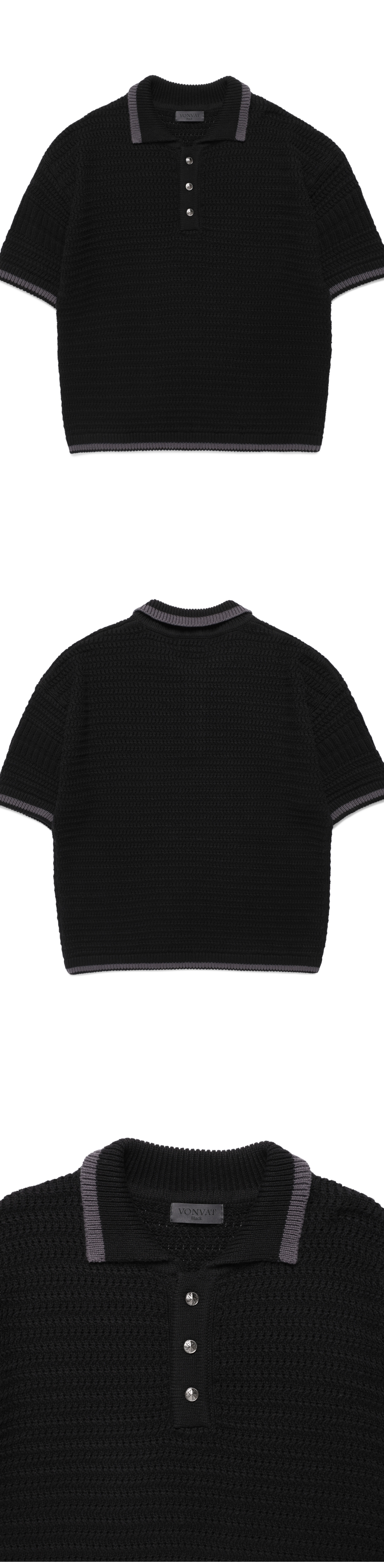 본바트 풀오버 포인트 카라 숏 니트 블랙