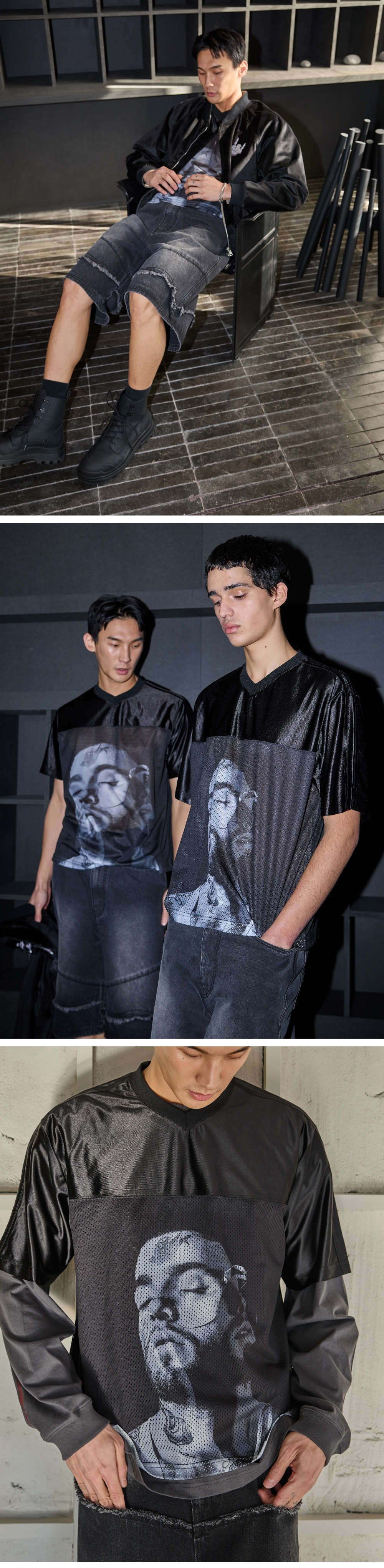 본바트 휴먼 그래픽 메쉬 숏 져지 블랙