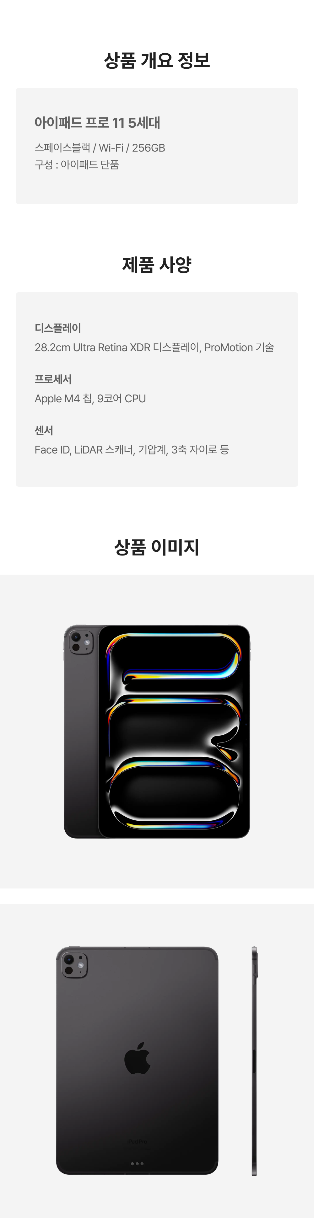 [S등급] 리퍼비시 아이패드 프로 11 5세대 wifi Apple M4 256기가 스페이스블랙