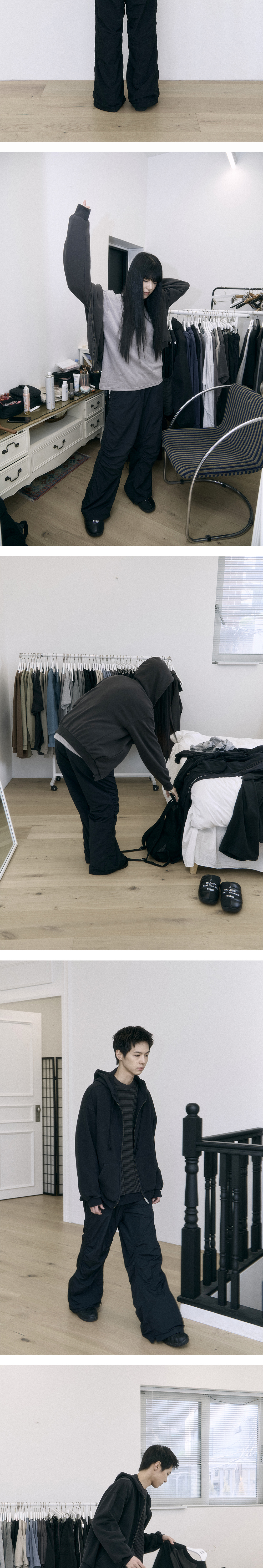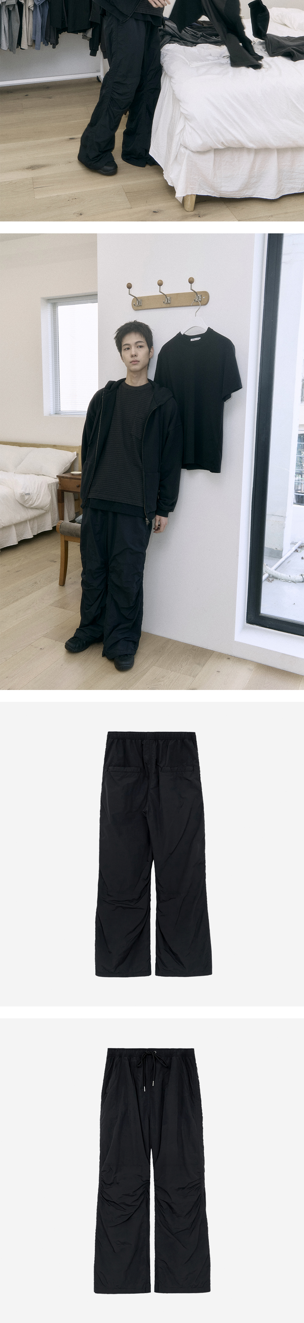 폴리테루 휴먼인덱스 유니섹스 나일론 셔링 플레어 팬츠 블랙