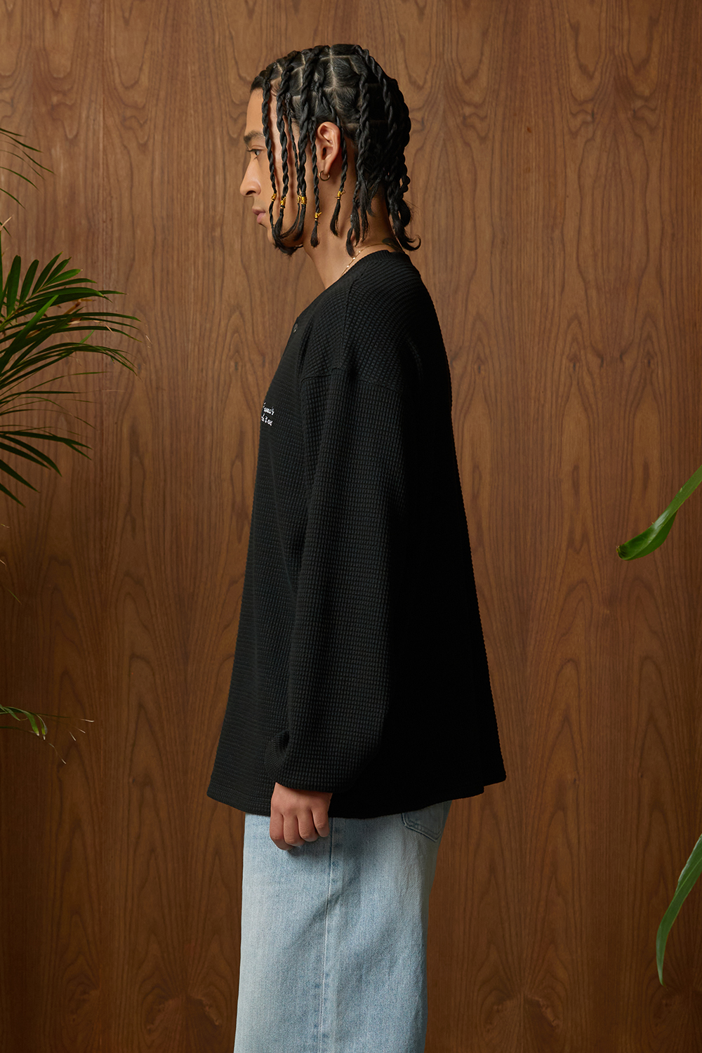 Broken Beat Henley Neck Long Sleeve Shirt Black