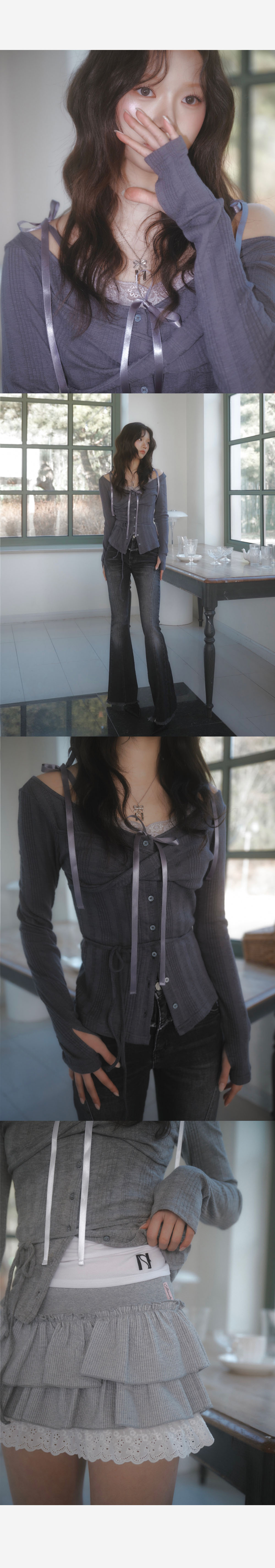 Newalrin Ribbon lace sleeveless Top Light Gray