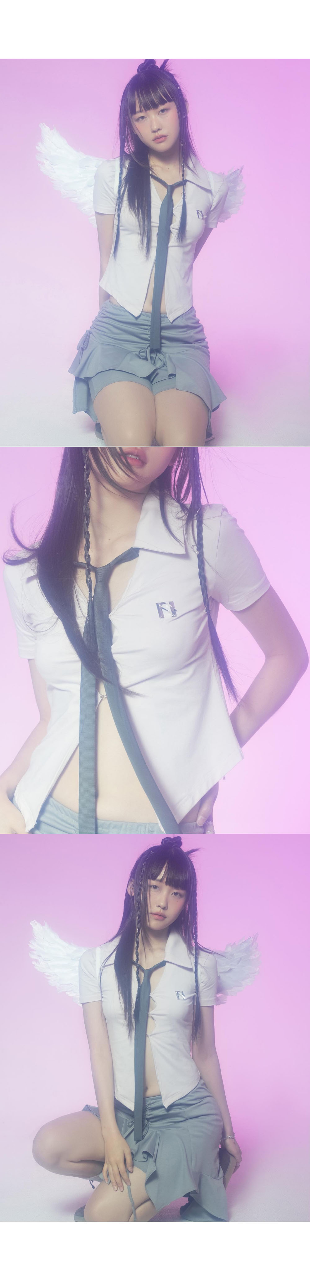 뉴얼린 셔츠탑 반팔 베이비핑크