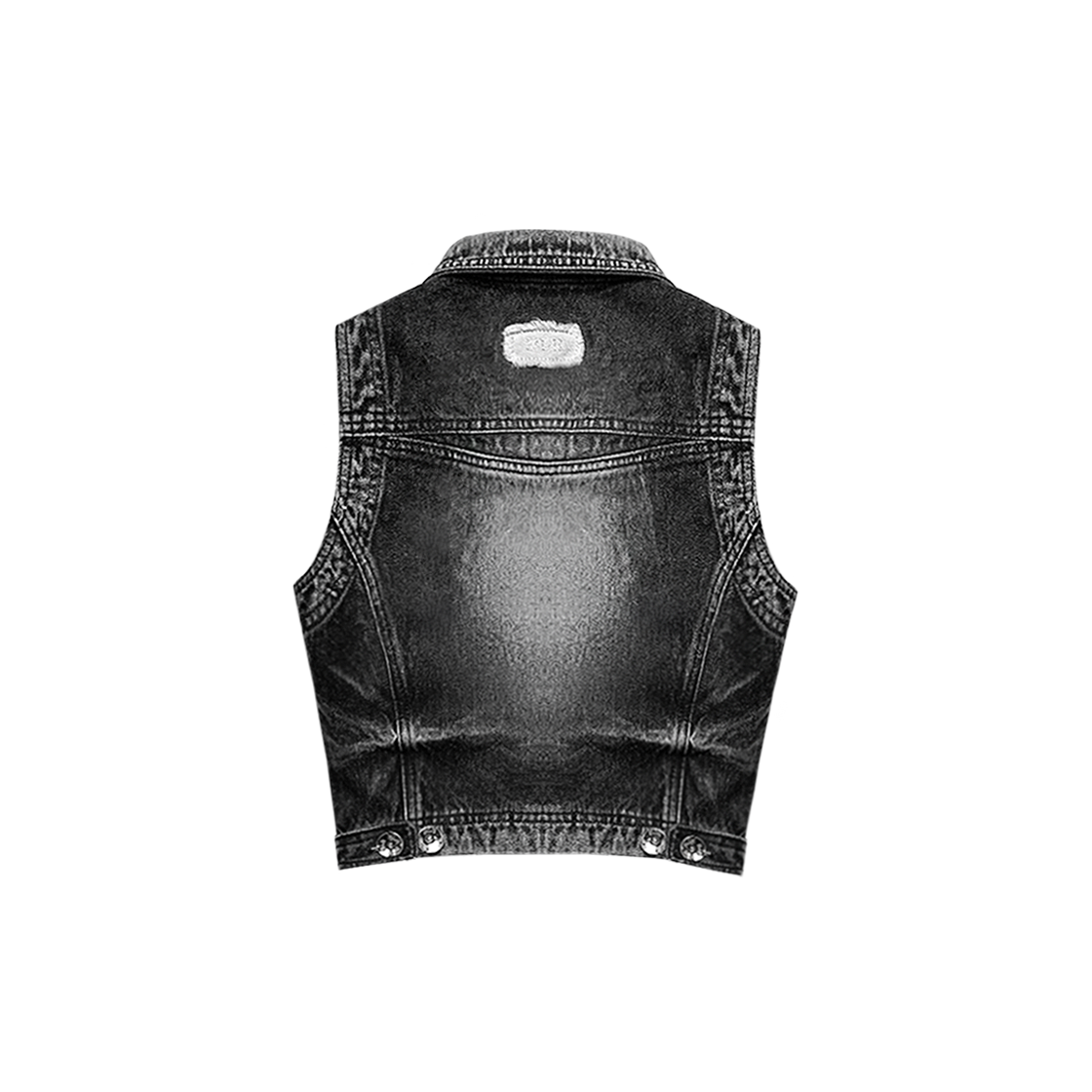 BLR Summer Washing Biker Denim Zip-Up Vest Black