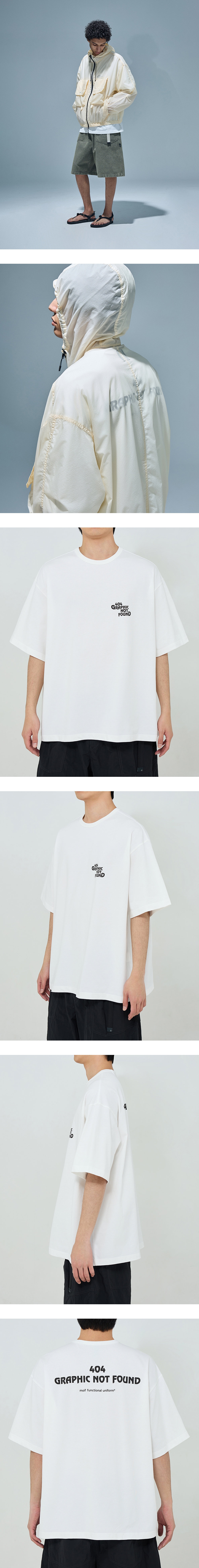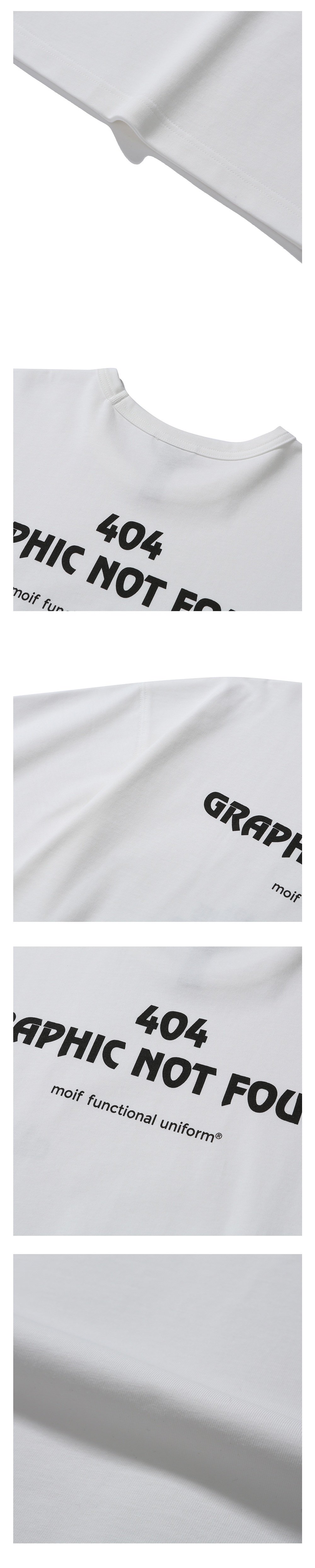 그래픽 프린트가 돋보이는 반팔 포켓 티셔츠 · 여유 있는 오버사이즈 실루엣. · 골지가 있는 립 오프닝. · 두께감이 있는 고밀도의 부드러운 면 원단 사용. · 수축 방지 가공된 원단으로 세탁 후에도 변형이 적음. · 간단한 소지품을 넣을 수 있는 가슴 주머니. · 주머니 부분 모이프 심볼 포인트 라벨 부착. · 후면부 '404 GRAPHIC NOT FOUND' 그래픽 프린트.