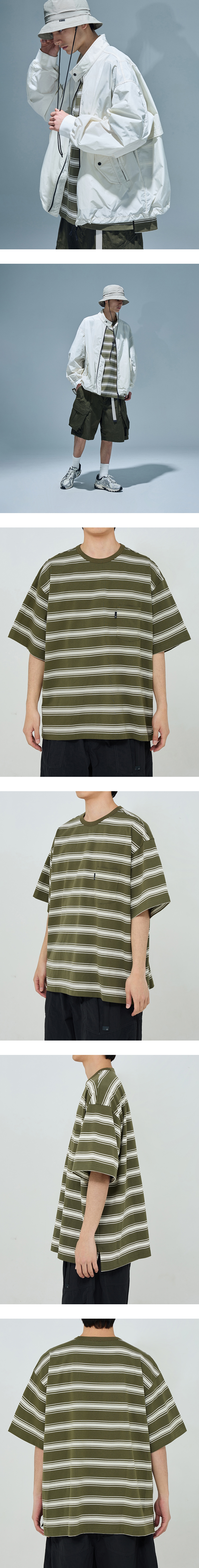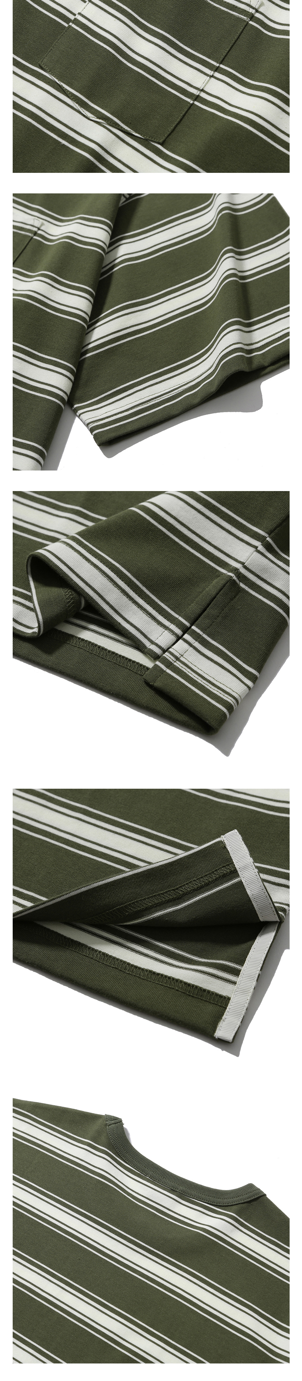 [SS25] 모이프 원포켓 H/S 티셔츠 올리브 스트라이프
