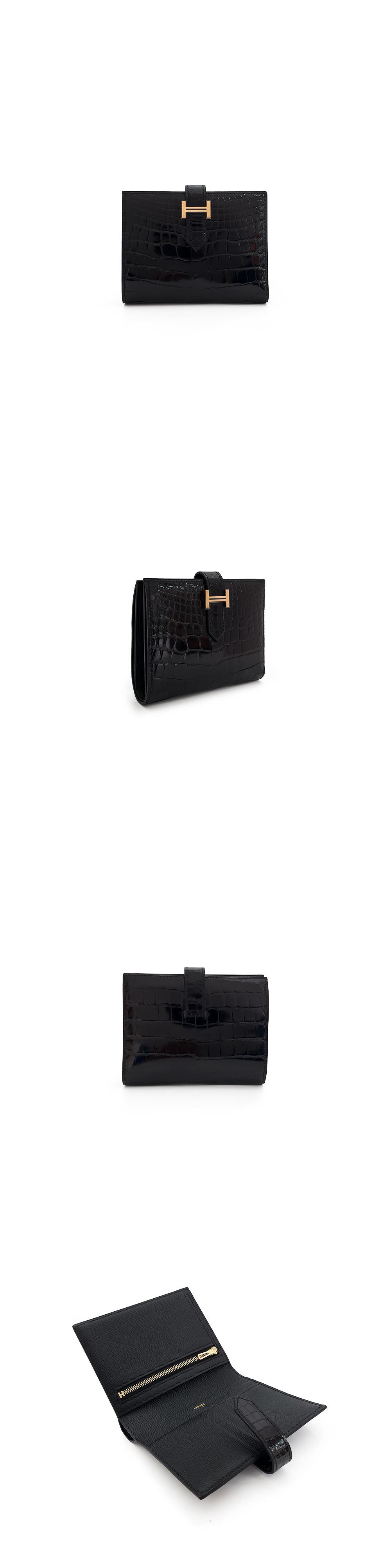 에르메스 엘리게이터 베안반지갑 블랙 로즈골드
