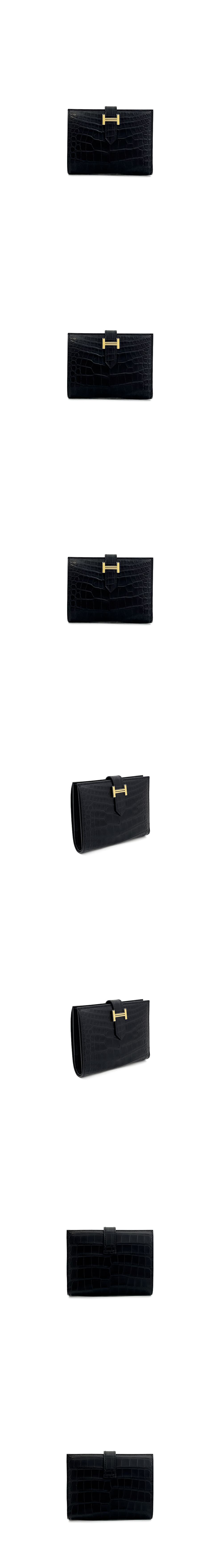 에르메스 악어 베안반지갑 블랙 금장 W각인
