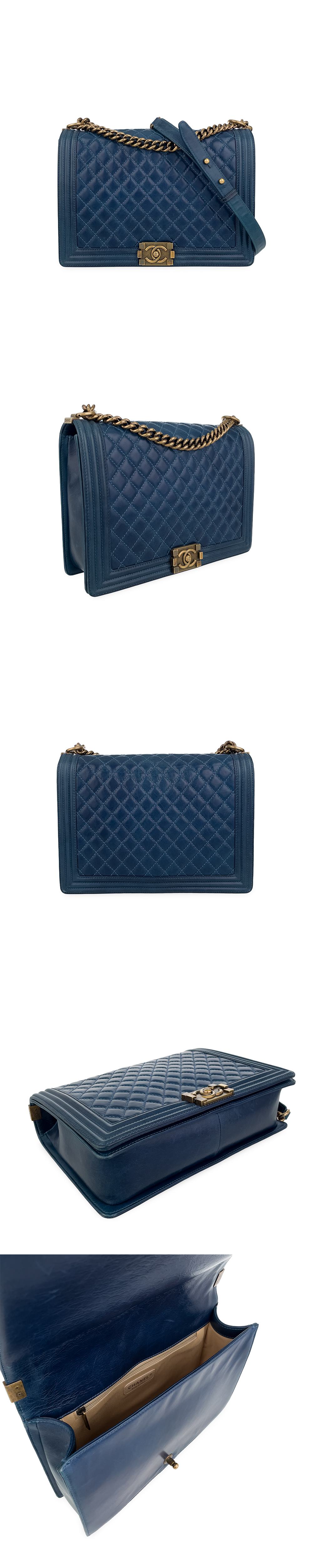 샤넬 보이백 맥시 딥블루 빈티지금장 카프스킨