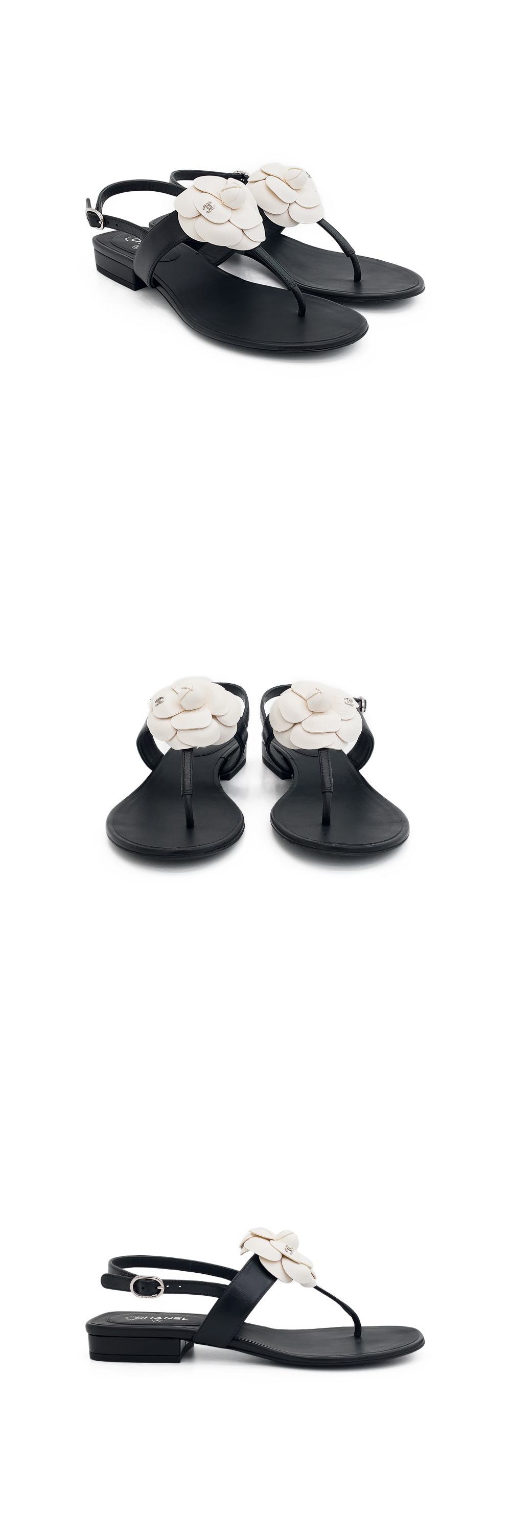 샤넬 22A 까멜리아 샌들 37 블랙/화이트