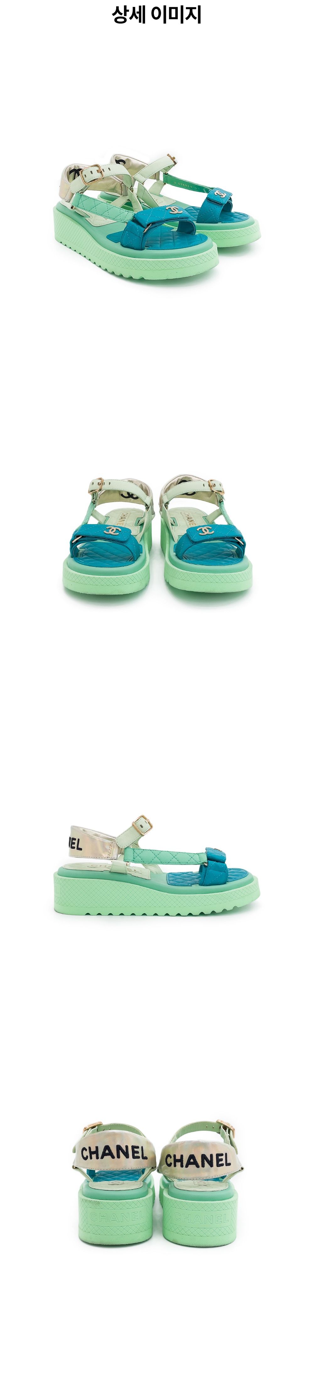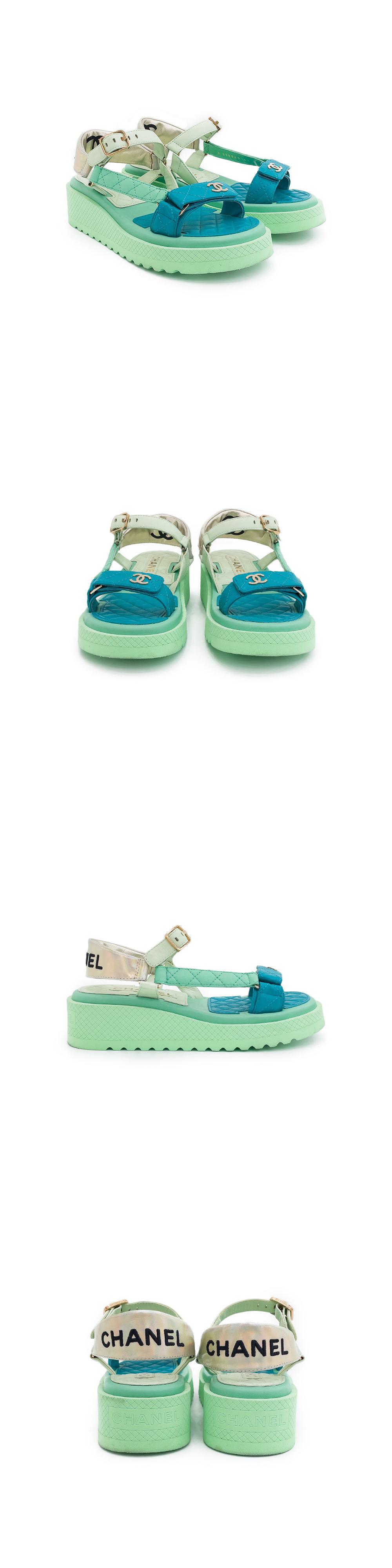 샤넬 22P 백레터링 샌들 37 그린/블루 샴페인골드