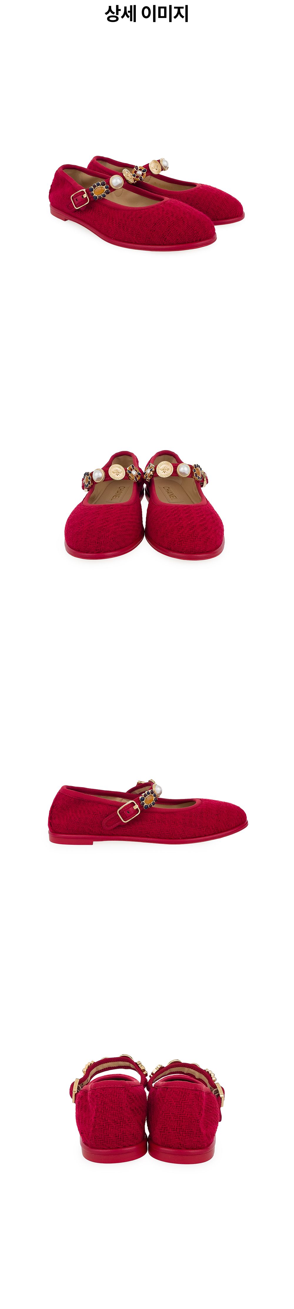 샤넬 24A 트위드 메리제인 플랫 슈즈 37.5 레드 금장