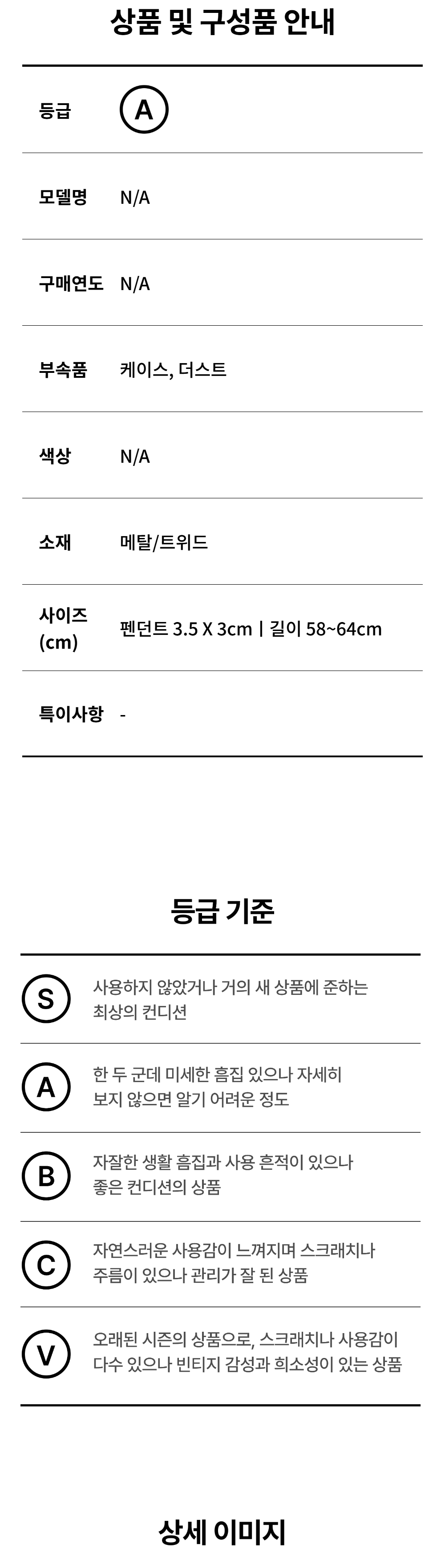 모든 상품(가죽, 의류, 잡화, 슈즈 등)은 사용자의 사용방법과 환경에 따라 변형, 변색이 될 수 있으니 반드시 취급 라벨에 표시된 관리 안내를 따르시길 권장 드립니다. 이는 정도의 차이가 있으며 과도한 체열과 땀, 습기, 빛, 마찰은 제품의 손상 및 변형을 일으킬 수 있으므로 주의하시길 바랍니다.