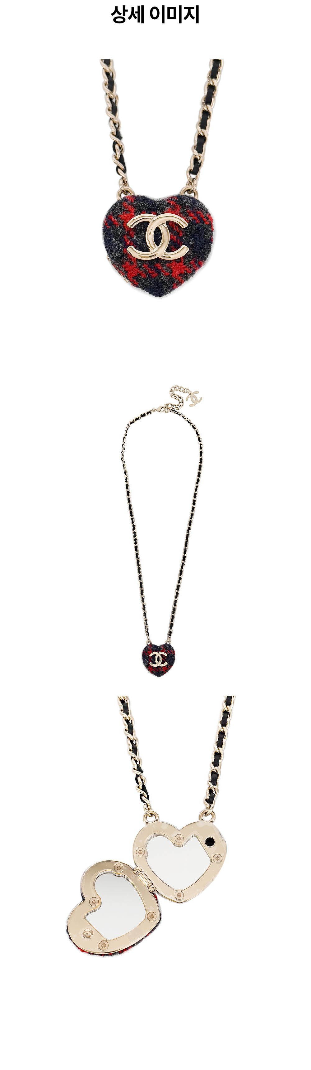 샤넬 22K 트위드 하트 미러 체인 네크리스 레드/네이비/골드
