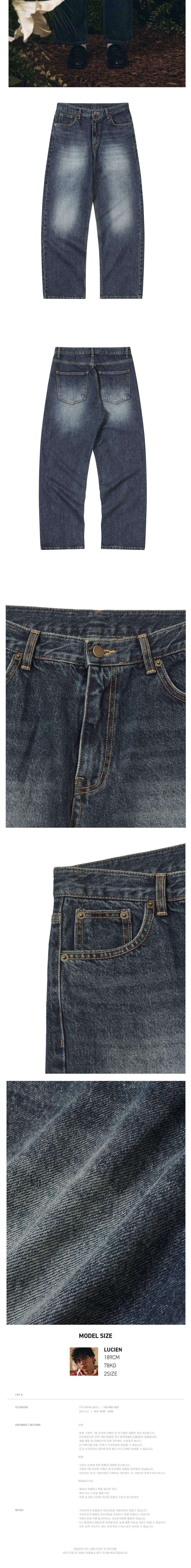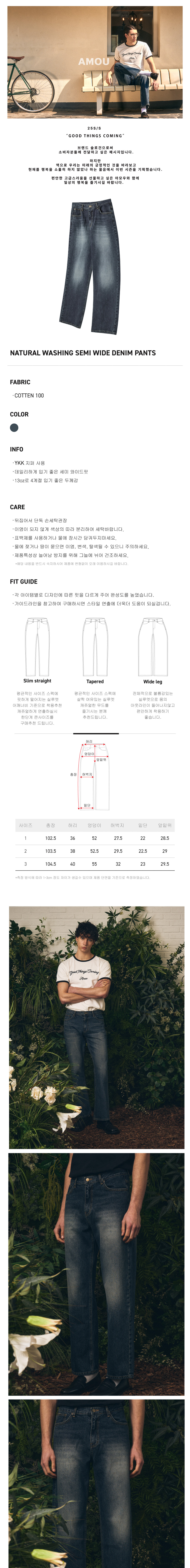 아모우 네츄럴 워싱 세미 와이드 데님 팬츠