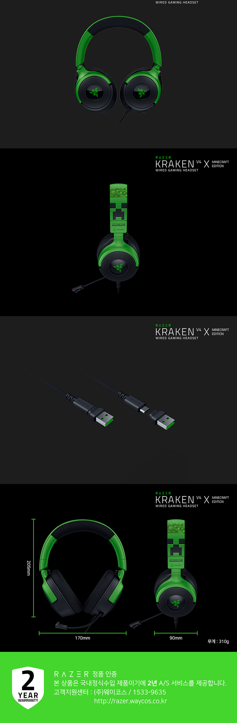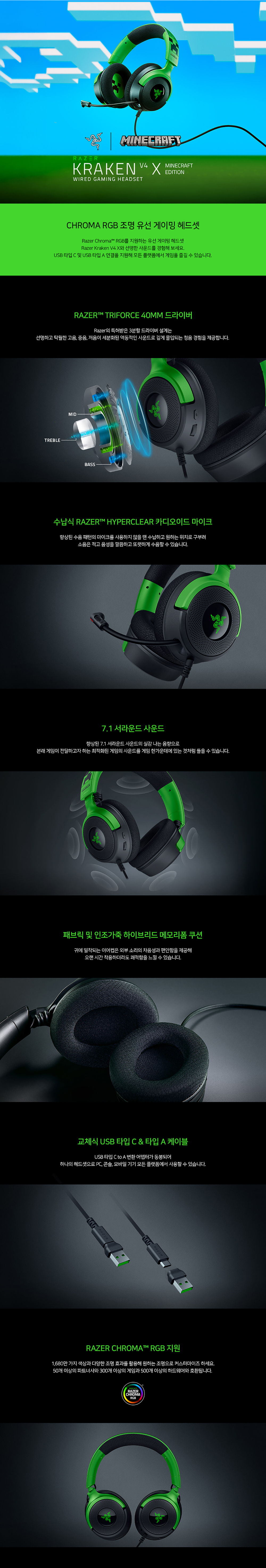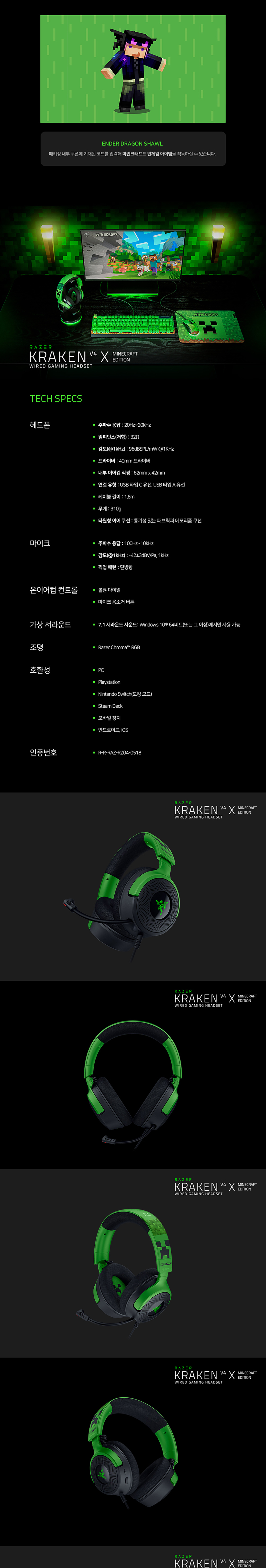 레이저 크라켄 V4 x 마인 크래프트 에디션 게이밍 헤드셋
