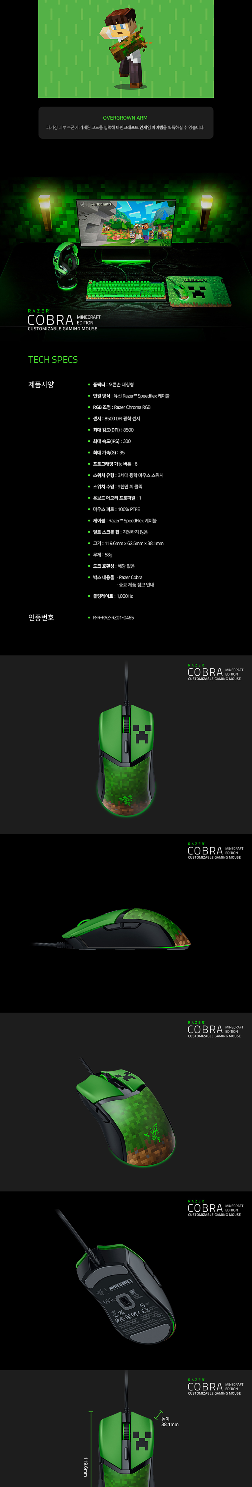 레이저 코브라 마인크래프트 에디션 게이밍 마우스