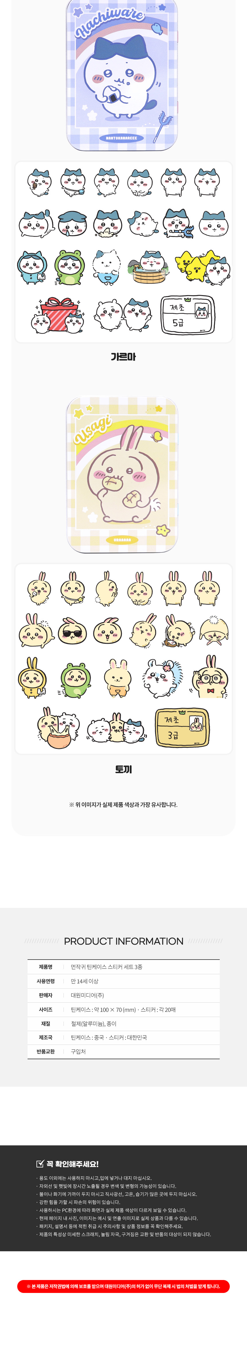 대원미디어 먼작귀 캐틱터 틴케이스 스티커 세트 3종 가르마