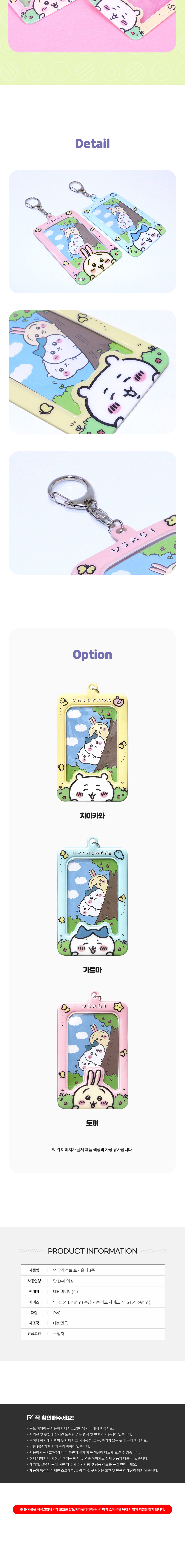 대원미디어 먼작귀 캐릭터 점보 포토카드 홀더 키링 증사홀더 3종 치이카와
