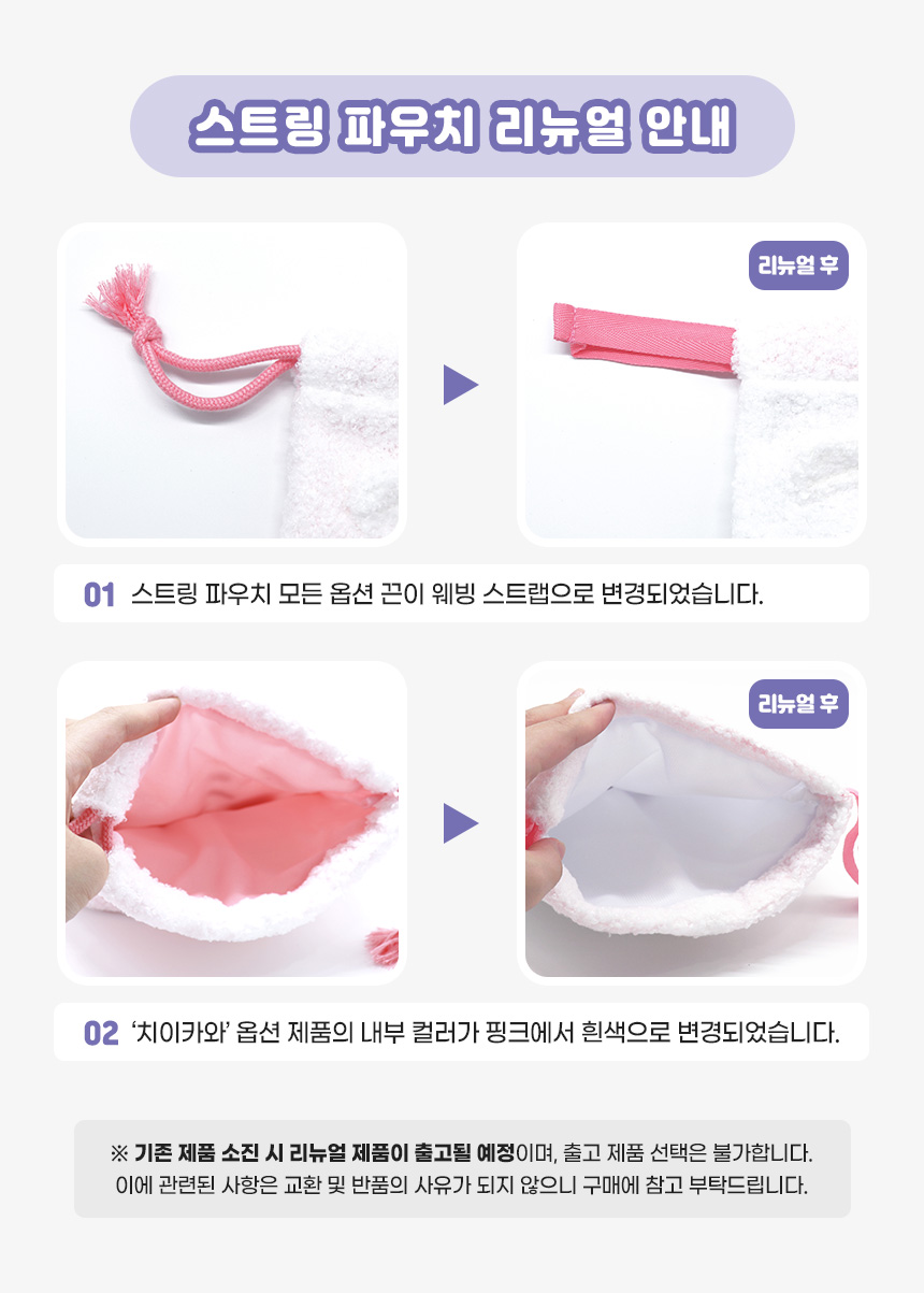 대원미디어 먼작귀 캐릭터 스트링 뽀글이 파우치 3종 토끼