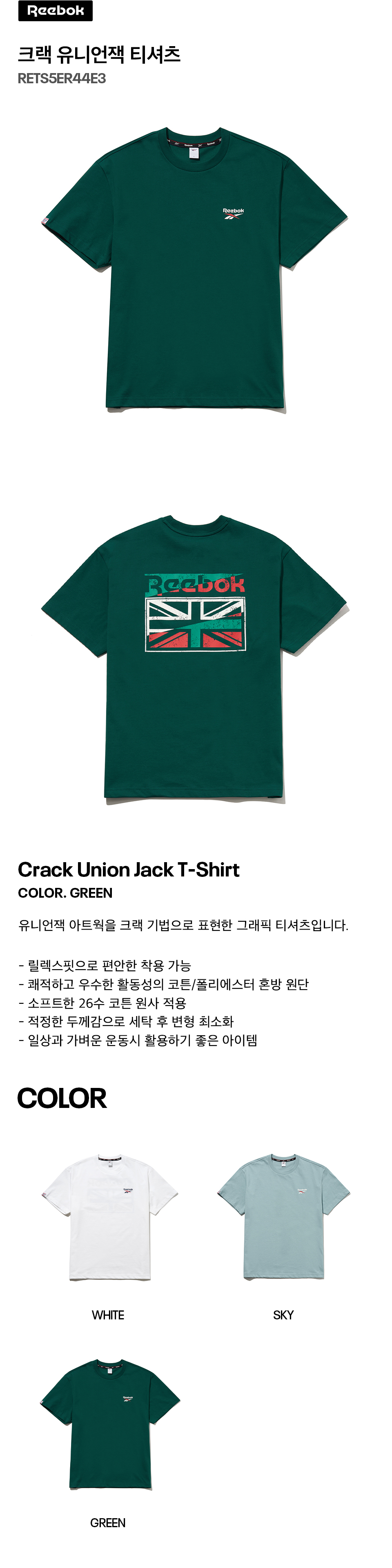 리복 크랙 유니언잭 티셔츠 그린