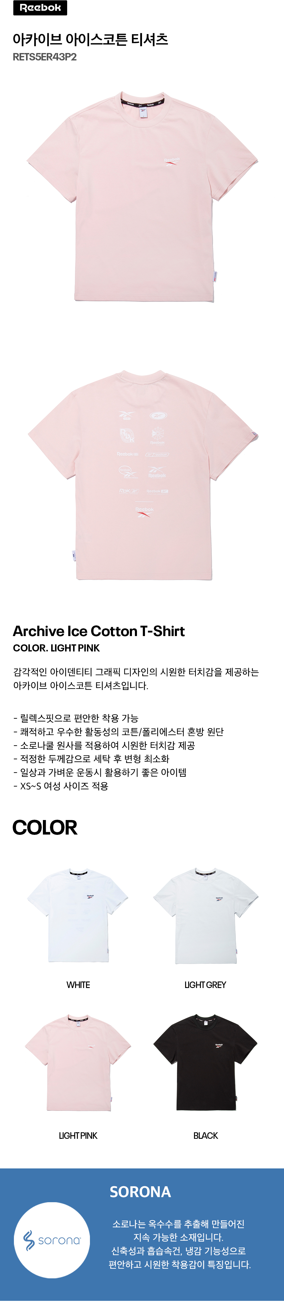리복 아카이브 아이스코튼 티셔츠 라이트 핑크