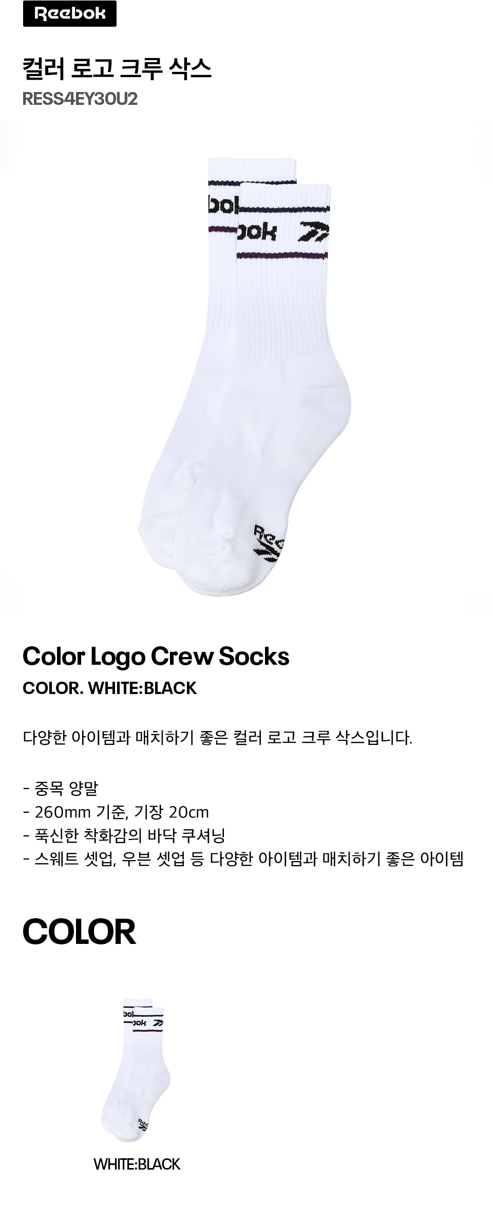 리복 컬러 로고 크루 삭스 화이트:블랙