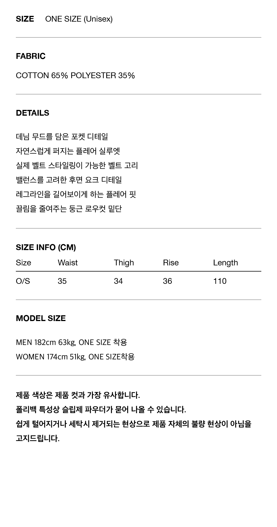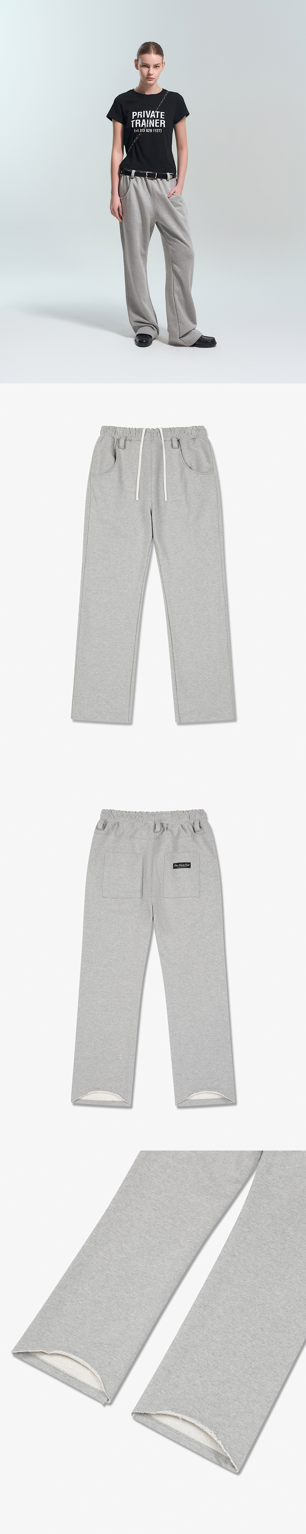 데님 팬츠를 연상시키는 포켓 디테일과 자연스럽게 퍼지는 플레어 실루엣이 돋보이는 스웻 팬츠입니다. 실제 벨트 스타일링이 가능한 벨트 고리를 더해 활용도를 높였으며, 후면 요크 디테일로 안정적인 밸런스를 잡았습니다. 다리가 길어보이는 핏에, 밑단 후면은 둥글게 커팅된 로우컷 마감으로 끌림을 줄여 실용성을 더했습니다.