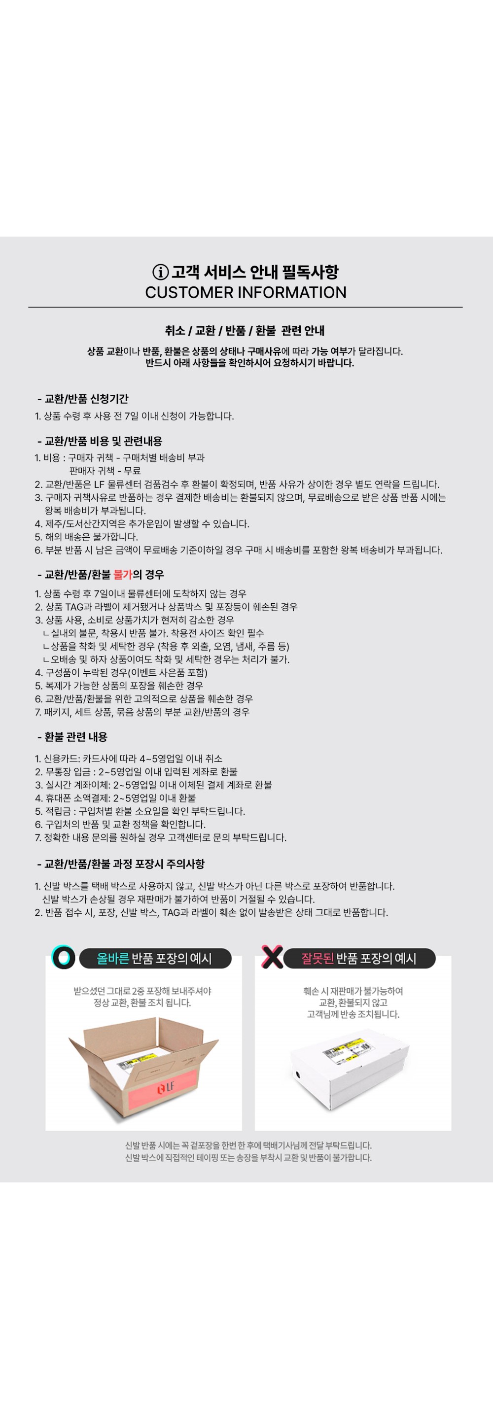 교환 및 반품 안내