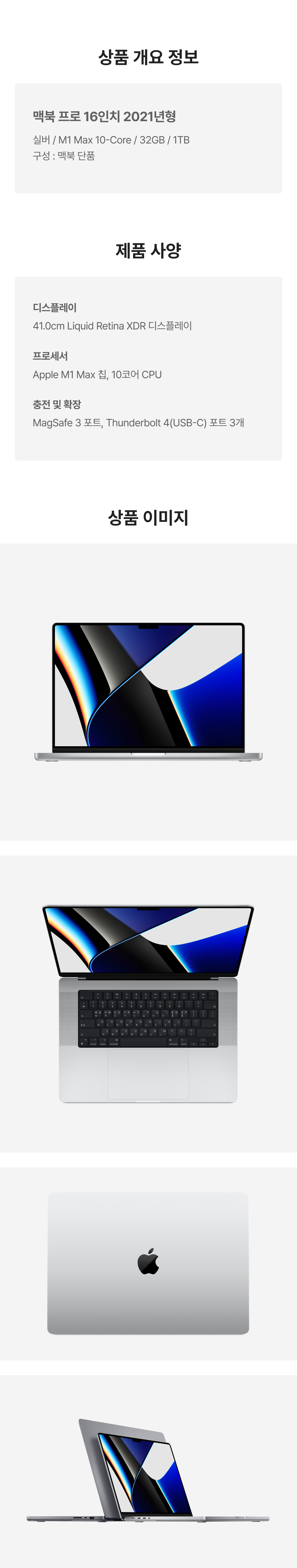 [S등급] 리퍼비시 2021 맥북 프로 16 M1 Max 10c 1테라 SSD 32기가 램 실버