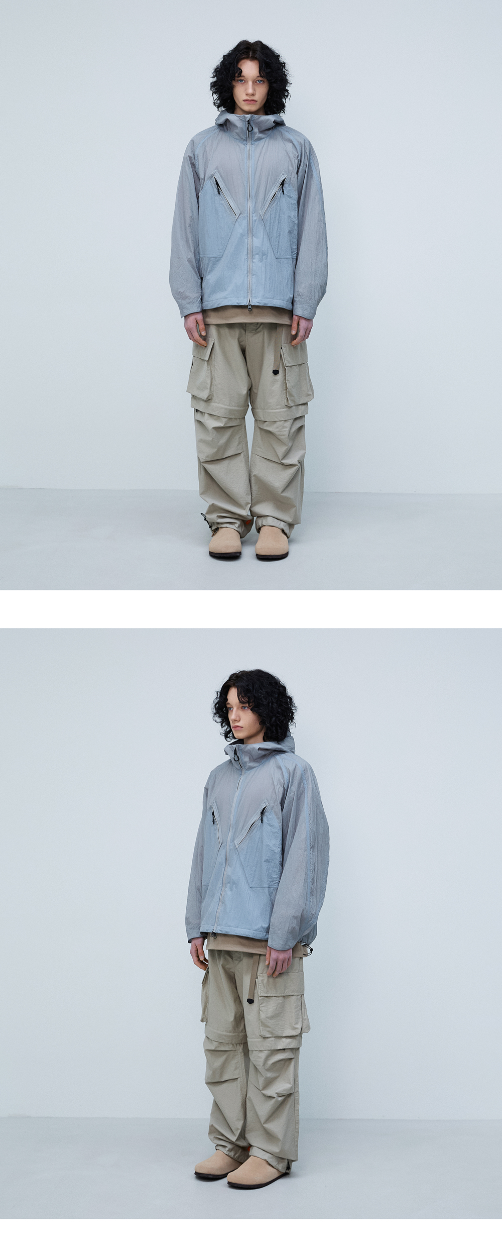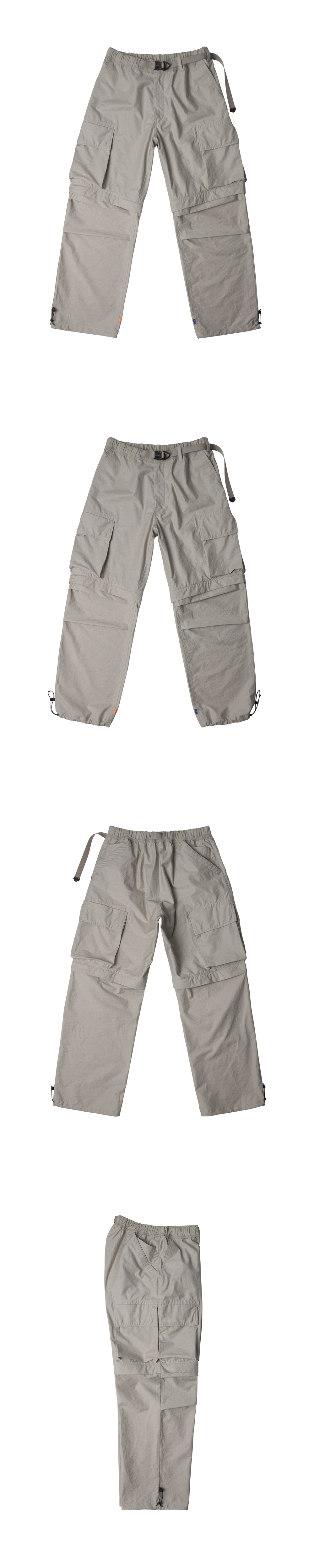 rootfinder® S/S 2025 ‘RE: LAYER’ Collection -B.D.U(전투복) 매력적인 요소를 현대적으로 재해석한 디자인. -지퍼를 활용한 모듈형 설계로, 팬츠와 숏츠 두 가지 스타일로 활용 가능한 투웨이 팬츠. -허벅지에는 4개의 입체 카고 포켓과 보조 포켓을 더해 실용적인 유틸리티 디테일 구성. -허리부터 밑단까지 자연스럽게 떨어지는 와이드 스트레이트 실루엣. -무릎에는 여유 분량을 더한 턱 디테일로 움직임을 고려한 설계. -밑단 스트링 어저스터로 원하는 실루엣 연출 가능. -코튼/나일론 혼방 트윌 소재에 바이오 가공을 더해, 자연스러운 표면감과 편안한 촉감을 살림. 모델 179cm M 사이즈 착용 중량 460g M 사이즈 기준