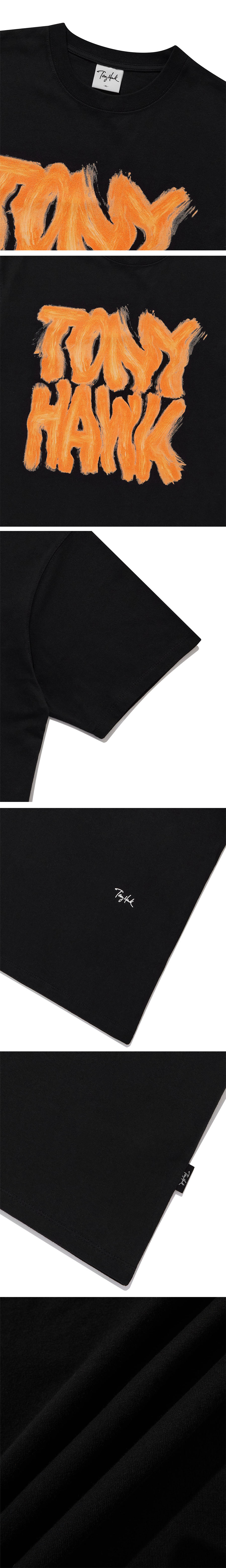 토니호크 브러시 레터링 그래픽 티셔츠 블랙