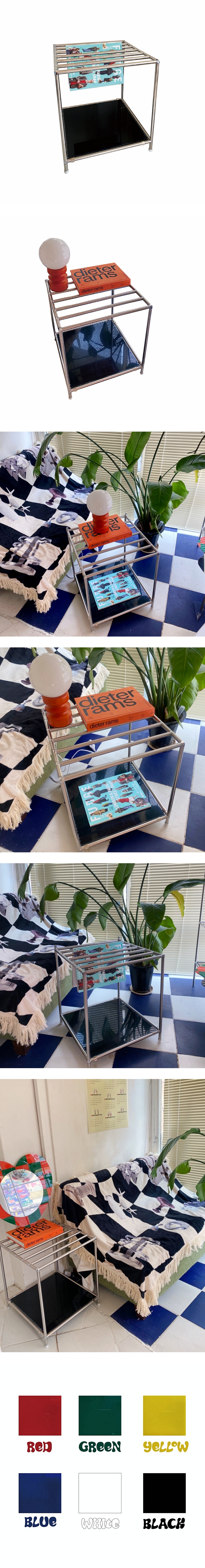 책을 걸 수 있고, 협탁과 선반 등 다양하게 사용할 수 있는 Book rack module shelf 를 소개합니다. 일반 선반의 디자인과 조금 다른 제품으로 실용적이면서도 공간안에 포인트를 줄 수 있는 선반으로 추천드립니다. 아크릴 판 (블랙/옐로우/레드/블루/그린/화이트)과 투명유리판 중 선택하여 구매 가능하며, 앵글의 경우 15 파이프로 제작 했습니다. 직접 앵글을 짜는 과정에서 흠집과 기스가 발생하며, 이로 인한 교환과 환불은 불가능합니다.