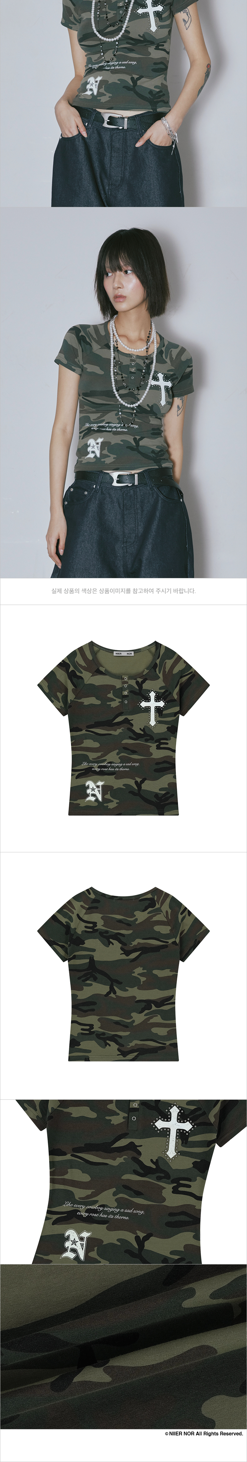 NIIER NOR Vintage Cross Button Down Tee Camo