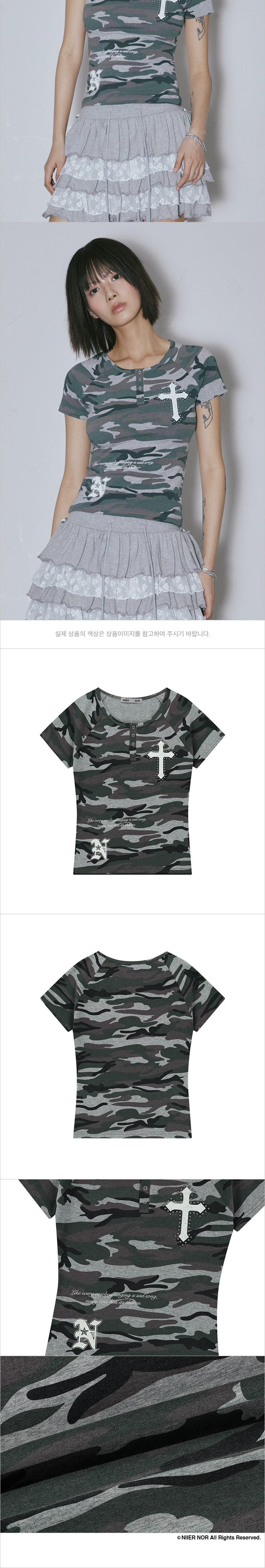 NIIER NOR Vintage Cross Button Down Tee Melange Camo