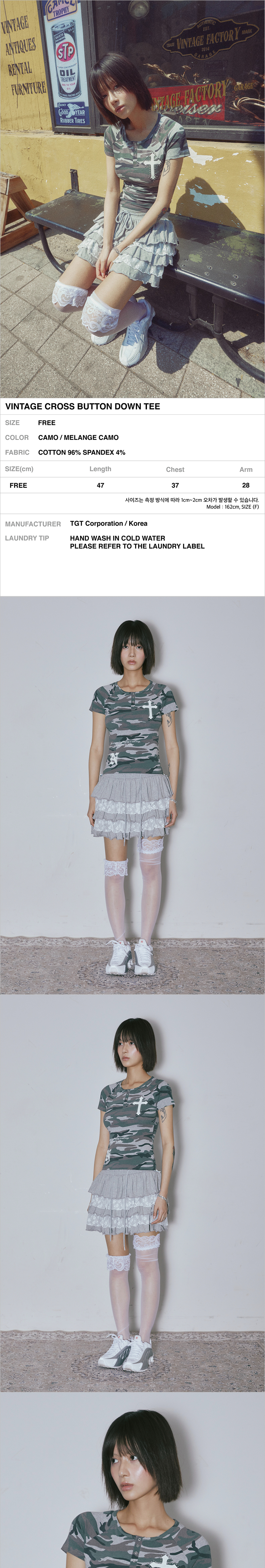 니어 노어 빈티지 크로스 버튼다운 티 멜란지 카모