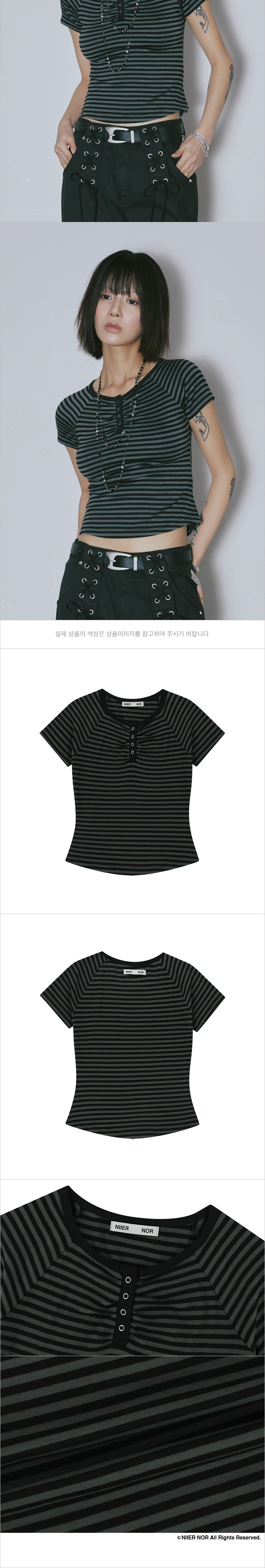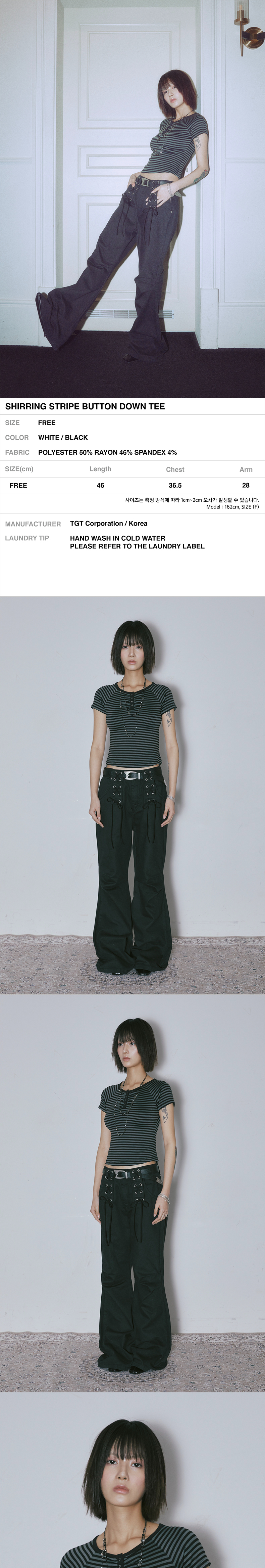 NIIER NOR Shirring Stripe Button Down Tee Black