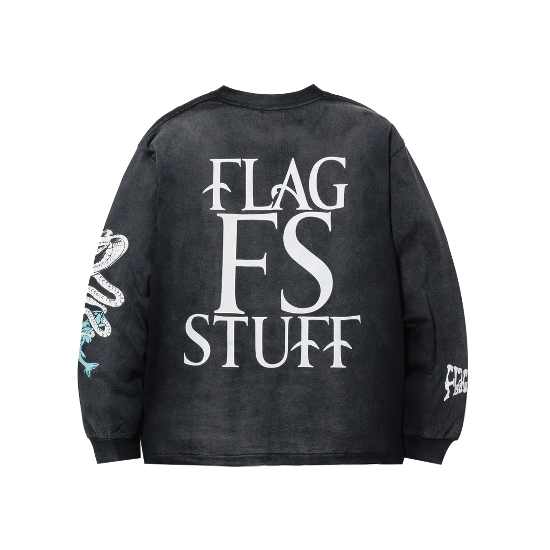 플래그스터프 스네이크 롱 슬리브 티 블랙 - 25SS - 8.1oz - 수작업으로 선페이드를 표현