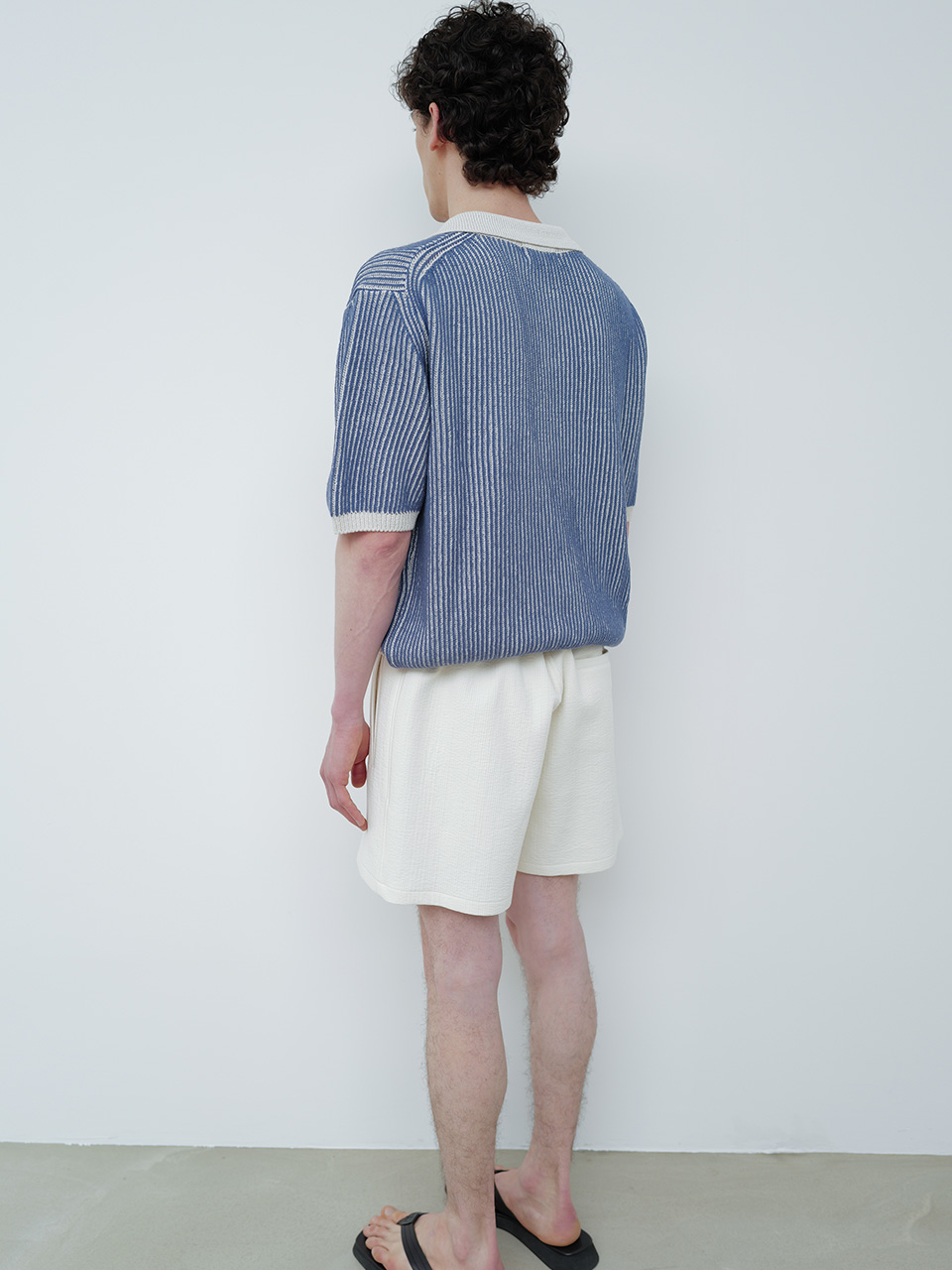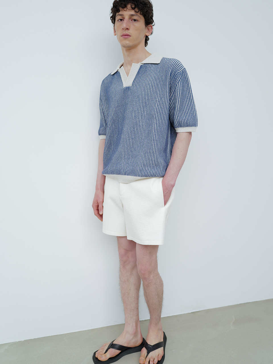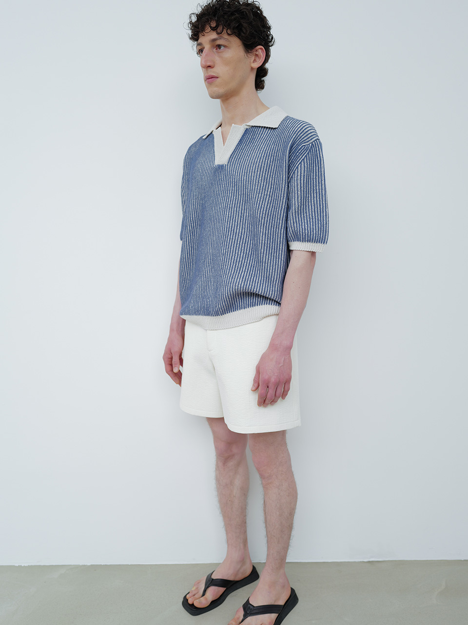 골지 소재의 코튼 원단으로 제작한 쇼츠입니다. 여유로운 핏의 쇼츠 디자인으로 허리 BACK에 밴드를 더해 편안한 착용감을 제공합니다. 비교적 크롭한 기장의 쇼츠로 여름철 가볍게 착용하기 좋습니다. 로고 각인된 지속 가능한 카제인 단추로 마무리하였습니다. QUILTED HALF SLEEVED SHIRT와 셋업으로 착용 가능합니다. 46 허리 35.5CM 엉덩이 53CM 총장 39.5CM 앞밑위 29CM 48 허리 38CM 엉덩이 55.5CM 총장 40.5CM 앞밑위 30CM 50 허리 40.5CM 엉덩이 58CM 총장 41.5CM 앞밑위 31CM 치수는 재는 위치에 따라 1-3cm 차이 생길 수 있습니다. 어두운 원단은 염색되었기 때문에 밝은 아이템과 착용 시 주의 부탁드립니다. DRY CLEAN ONLY 180cm 마른체형 모델 48 SIZE 착용