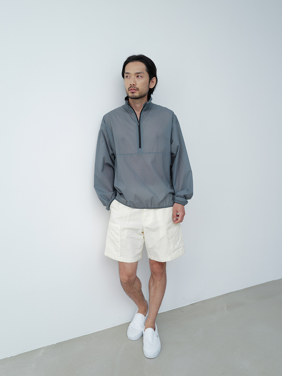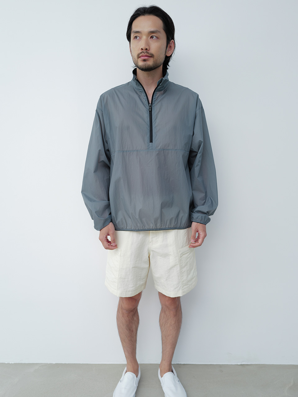 GRS(Global Recycled Standard) 인증을 받은 립스탑 조직의 리사이클 나일론 원단으로 제작한 아노락 점퍼입니다. 오버 사이즈 실루엣의 에어리한 경량감이 특징인 아노락 디자인으로, 밑단과 소맷단의 얇은 밴드 디테일로 포인트를 주었으며 뒷 패널 아래의 포켓 디테일로 실용성을 더했습니다. 개발한 심볼 로고 슬라이더로 마무리하였습니다. 46 어깨 54CM 가슴 60.5CM 총장 69CM 밑단 49.5CM 소매 60CM 48 어깨 56.5CM 가슴 63CM 총장 70CM 밑단 52CM 소매 61CM 50 어깨 58.5CM 가슴 65.5CM 총장 71CM 밑단 54.5CM 소매 62CM 치수는 재는 위치에 따라 1-3cm 차이 생길 수 있습니다. 어두운 원단은 염색되었기 때문에 밝은 아이템과 착용 시 주의 부탁드립니다. DRY CLEAN ONLY 180cm 마른체형 모델 48 SIZE 착용