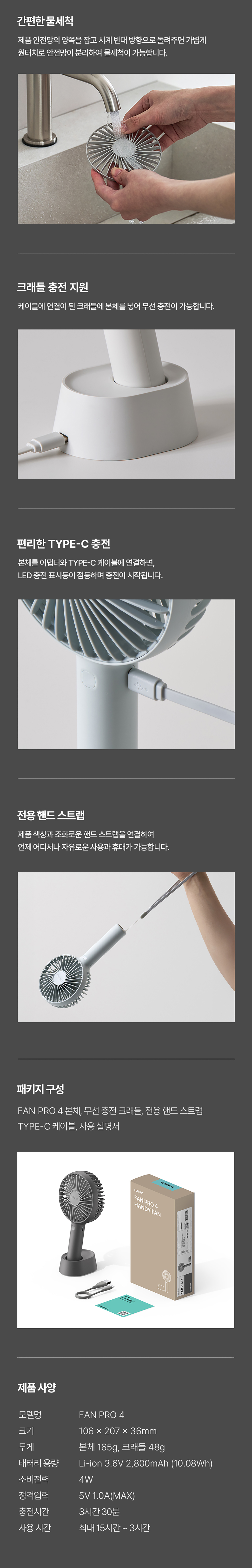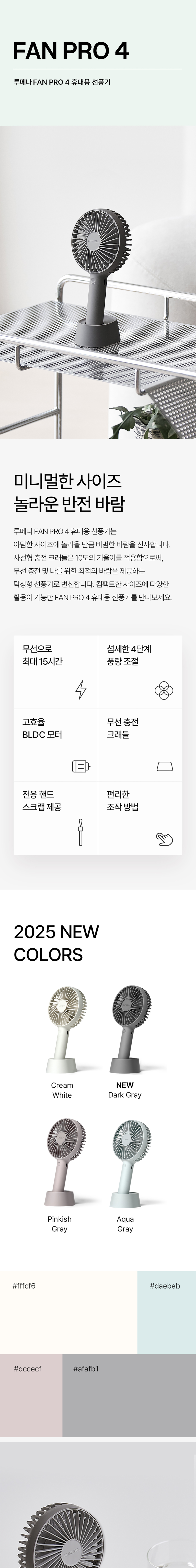 루메나 FAN PRO 4 휴대용 무선 선풍기 다크 그레이