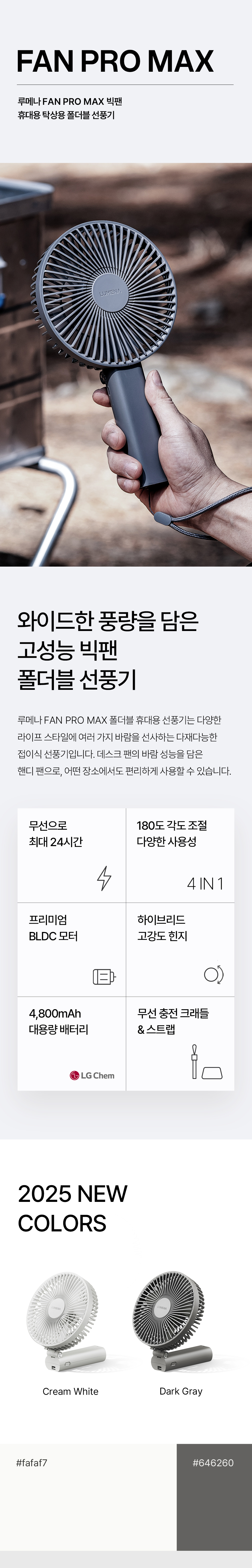 루메나 FAN PRO MAX 빅팬 휴대용 탁상용 폴더블 선풍기 크림 화이트