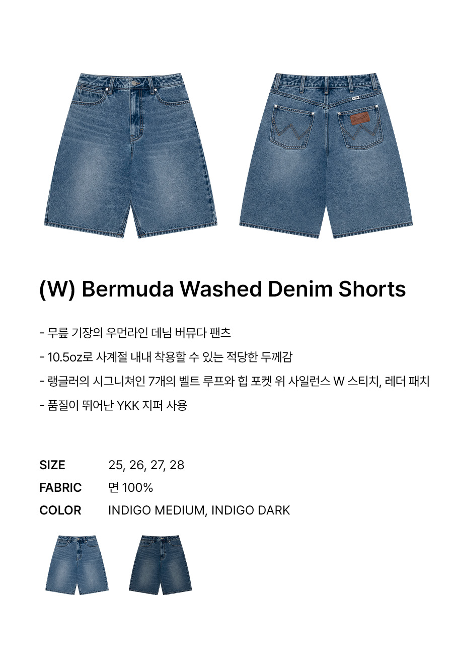 랭글러 (W) 버뮤다 워시드 데님 쇼츠 인디고 미디움