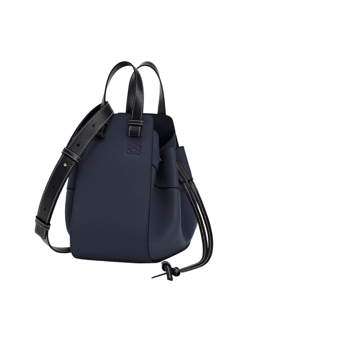 Loewe Small Hammock Drawstring Bag in Soft Grained Calfskin Midnight Blue Black